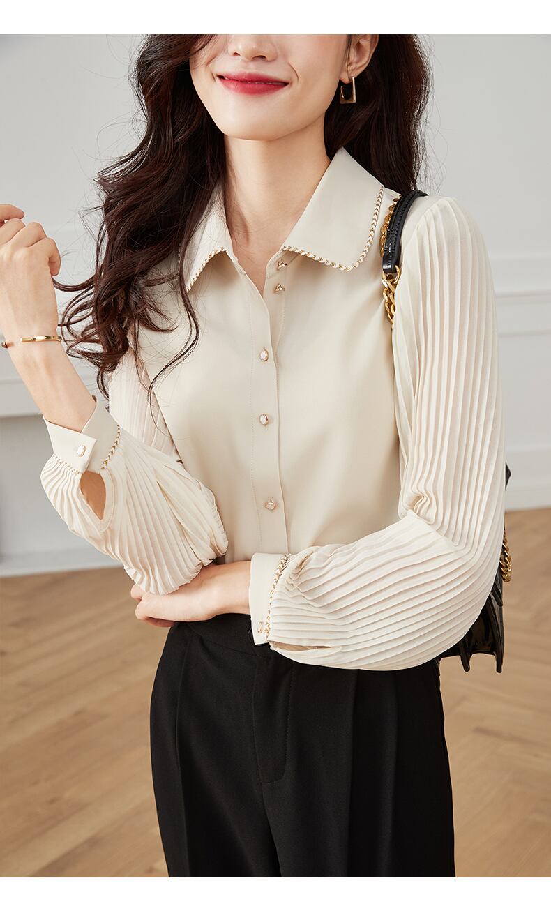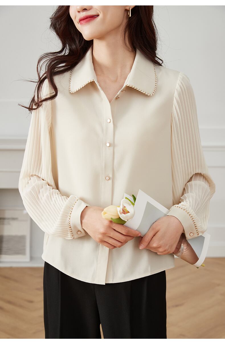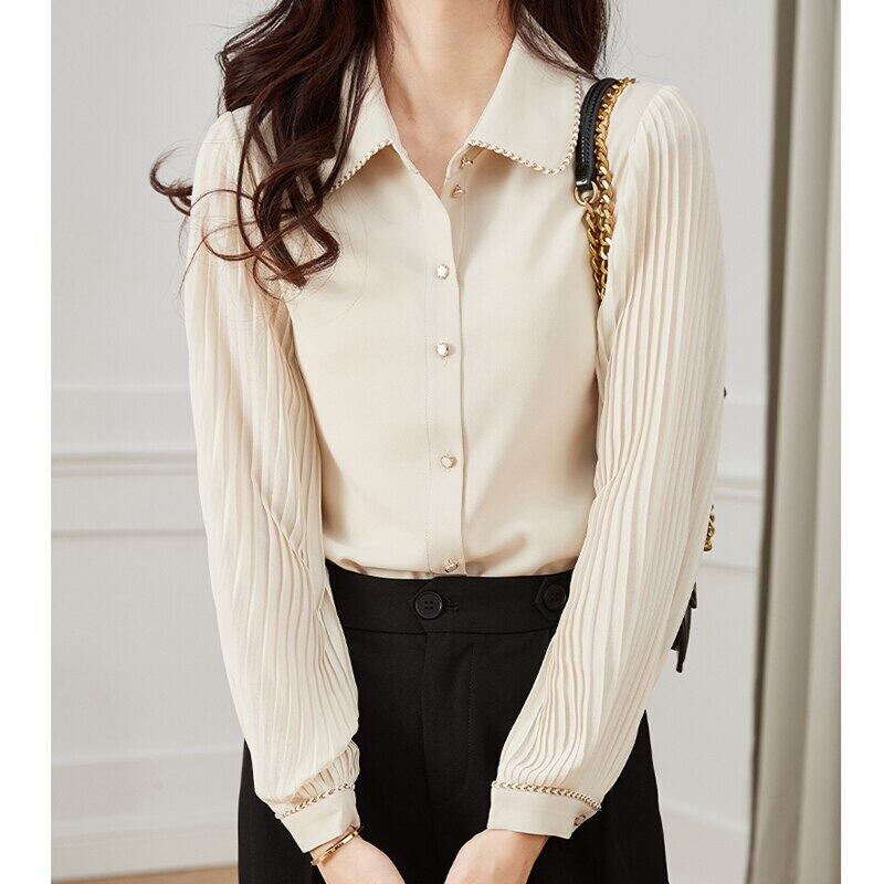 パフスリーブ女性ブラウス長袖トップ 2022 春ターンダウン襟シフォンシャツ甘いブラウス女性 ロング 大人ガーリー スウィート キュート カジュアル スプリング 春物 Son97386167871