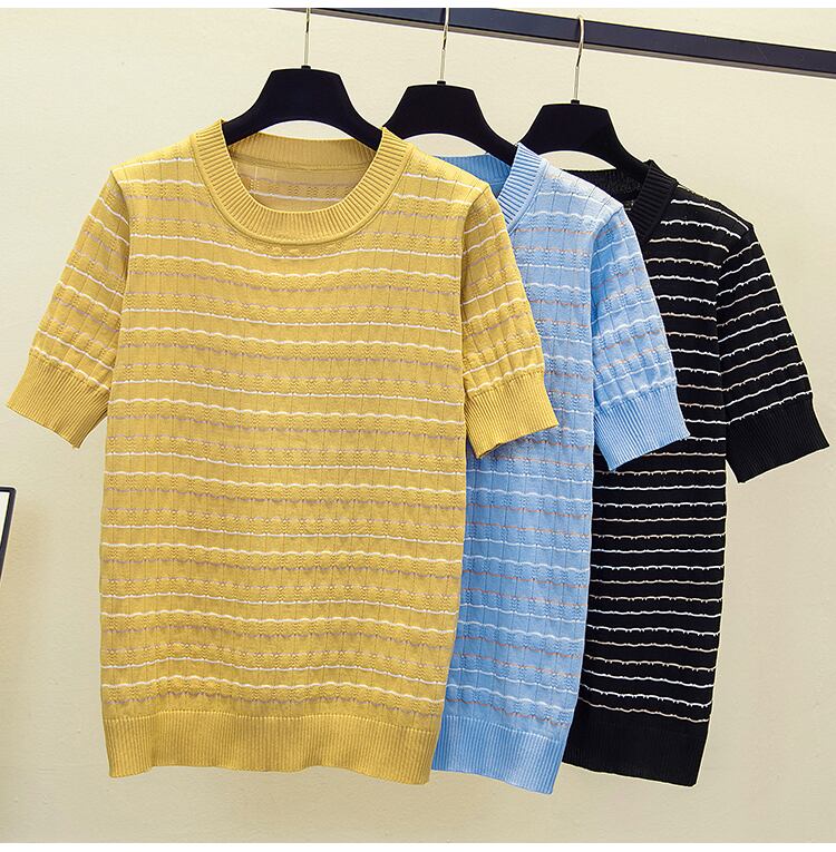 2022 夏ストライプ Tシャツ女性半袖 Tシャツニット女性トップス O ネック黒 Camisetas デ ショート ブラック ハーフスリーブ サマー 夏物 Oネック Son28957207063