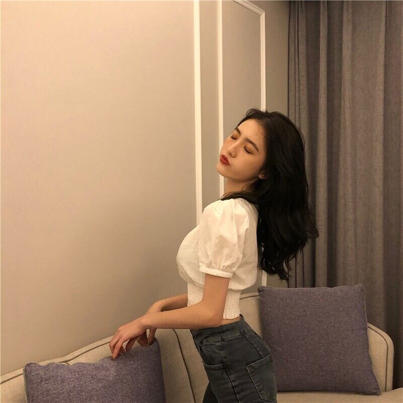 LJSXLS 2022 セクシーな V ネックシャツ夏スリムクロップトップス女性パフスリーブ黒、白ブラウス Roupas ホワイト ブラック サマー 夏物 Vネック Son88782166726