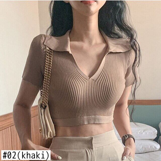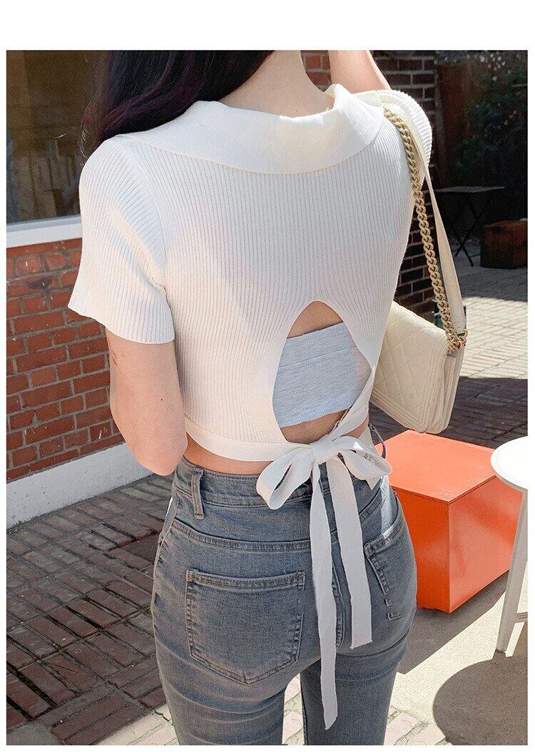 2022 夏黒 V ネックニット Tシャツ女性半袖 Tシャツオフホワイトセクシーなオープンバック包帯クロップドトップ ショート ブラック ハーフスリーブ サマー 夏物 Vネック Son10070619328