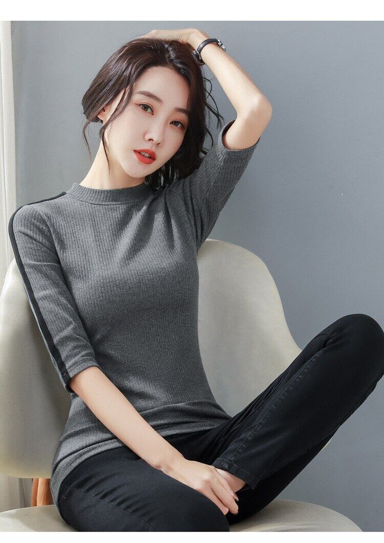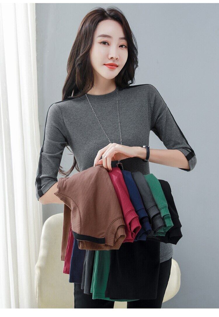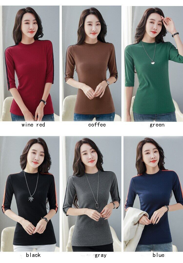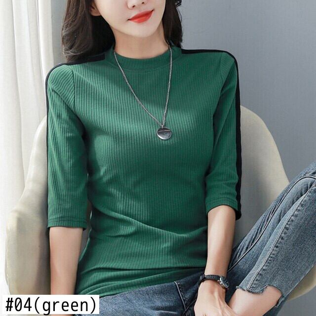 LJSXLS 秋ハーフカラーパッチワーク Tシャツコットン Tシャツ女性スタイルスリムトップス Tシャツ オータム 秋物 Son72722703048
