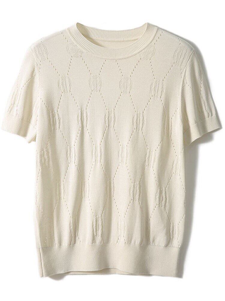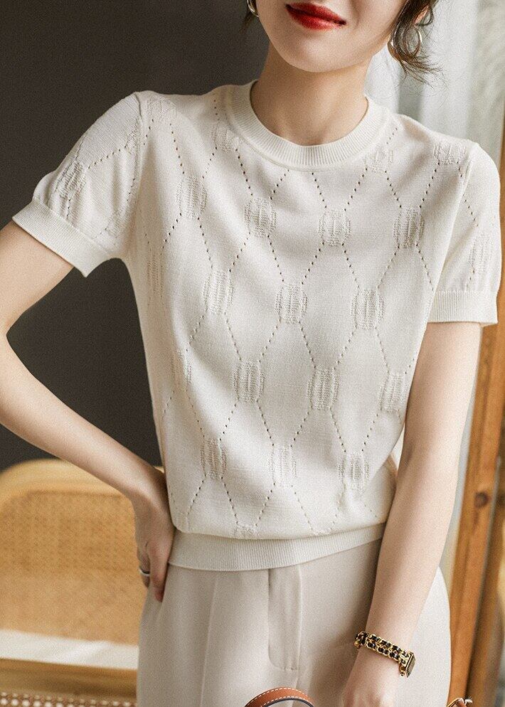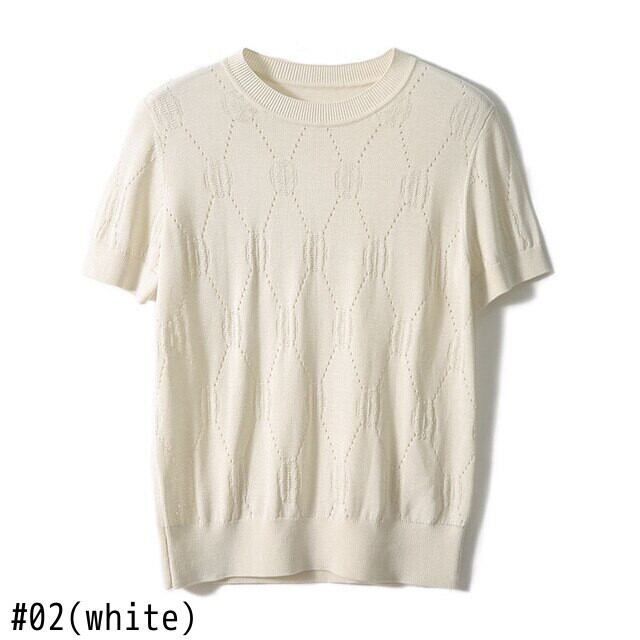 中空アウト夏薄型プルオーバー女性白セーター 2022 半袖ニットトップスジャンパー O ネックルーズセーター ショート ホワイト ハーフスリーブ サマー 夏物 Oネック Son89579098797