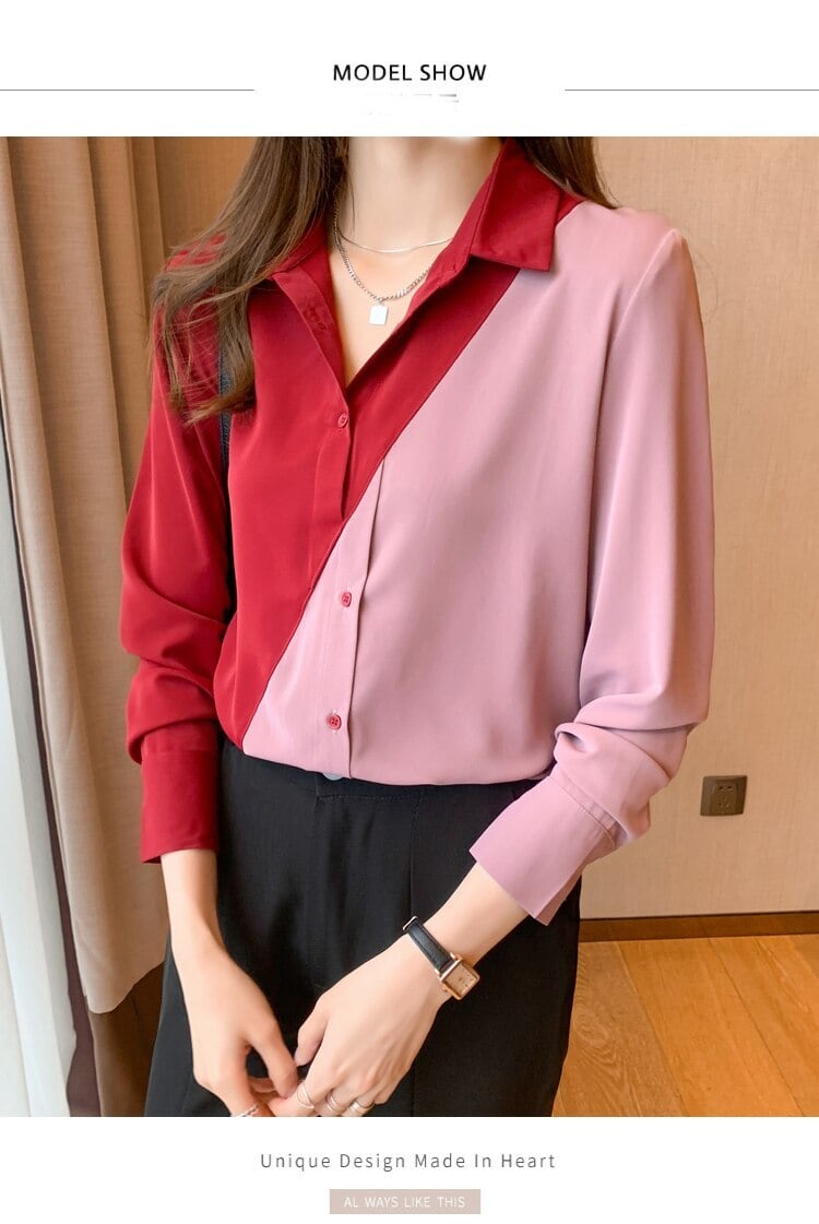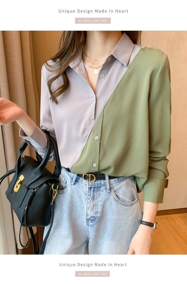 女性シャツ春秋長袖パッチワークルースブラウストップスタイルの女性の服 2022 ロング スプリング 春物 オータム 秋物 Son55890353192