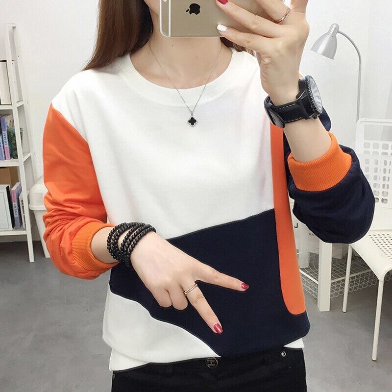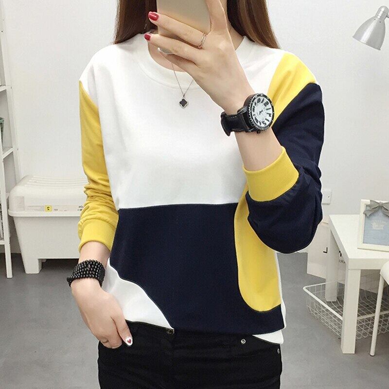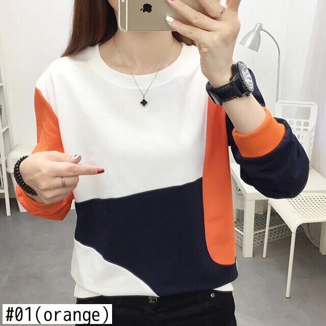 Poleras コントラストカラー O ネック女性 Tシャツ長袖 Tシャツ女性服 Tシャツ 2022 春秋トップス ロング スプリング 春物 オータム 秋物 Oネック Son13065048030