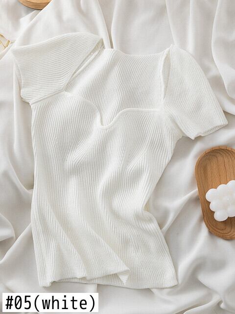 半袖 Tシャツ女性服夏 2022 レディーストップスニット Tシャツ白 V ネック弾性 Tシャツ Poleras ショート ホワイト ハーフスリーブ エラスティック 伸縮 サマー 夏物 Vネック Son33714898194