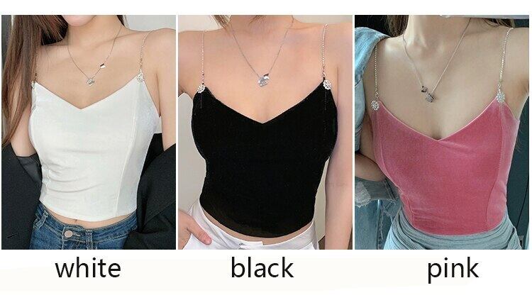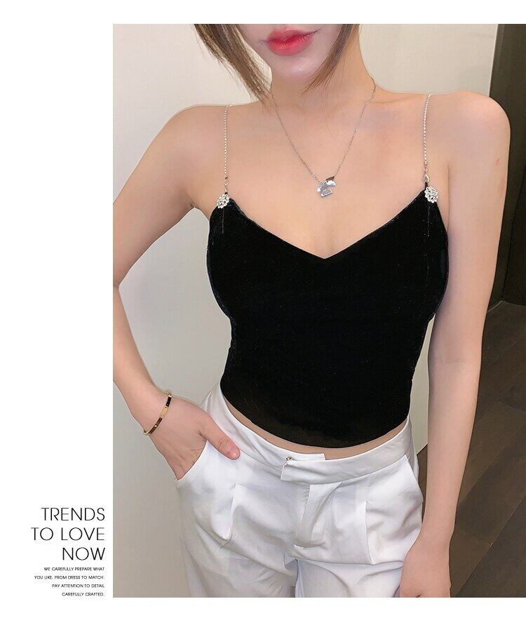 LJSXLS 2021 夏チェーンストラップクロップトップ女性ホルタートップス女性キャミソールセクシーなノースリーブスリム低胸服 Roupas s サマー 夏物 Son85091942423