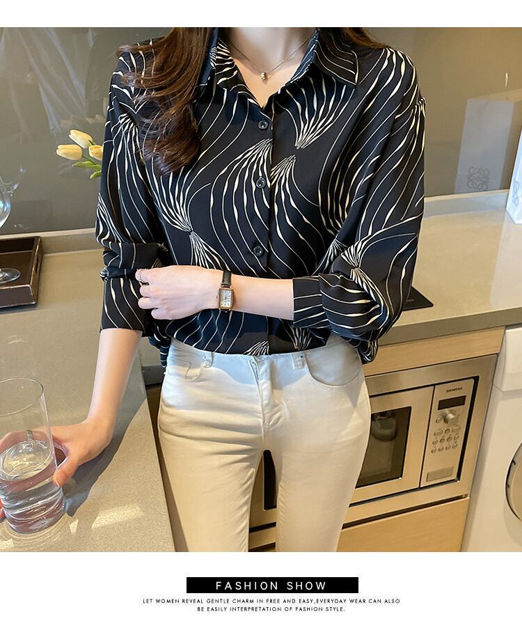 プリントシャツ女性トップスと Bloues 2022 春レディースターンダウン襟ブラウスシフォン長袖カミーサ ロング スプリング 春物 Son16008746415