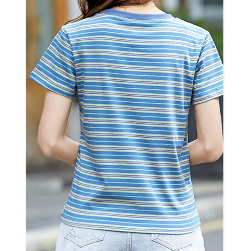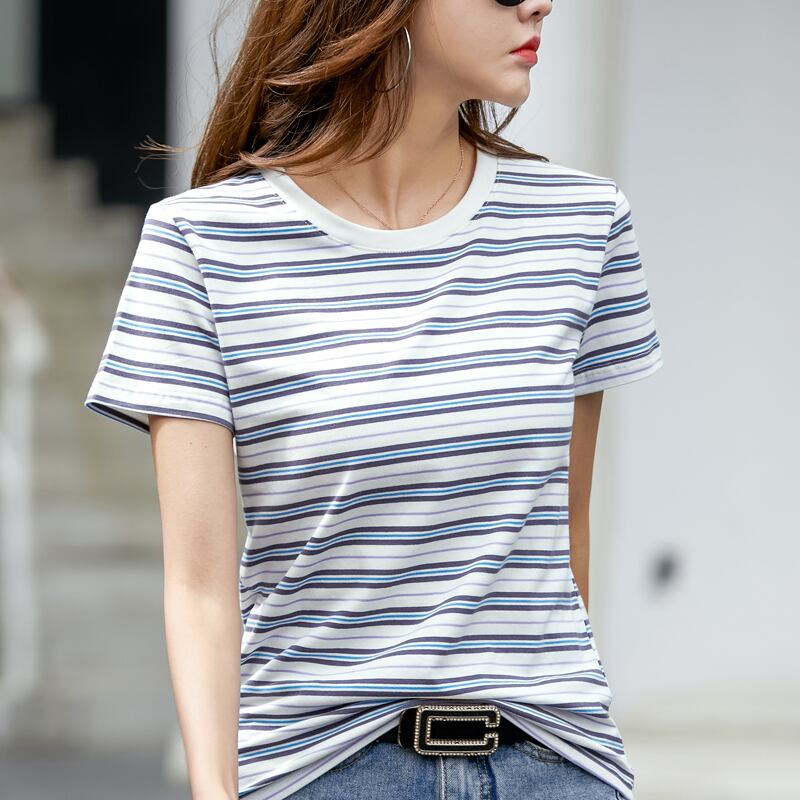2022 女 ショート ホワイト ブラック コットン 半袖 ハーフスリーブ Oネック ストライプ Tシャツ Son70335911227