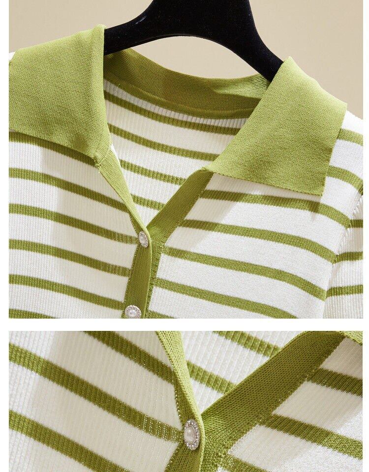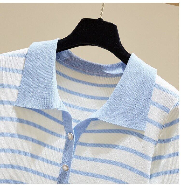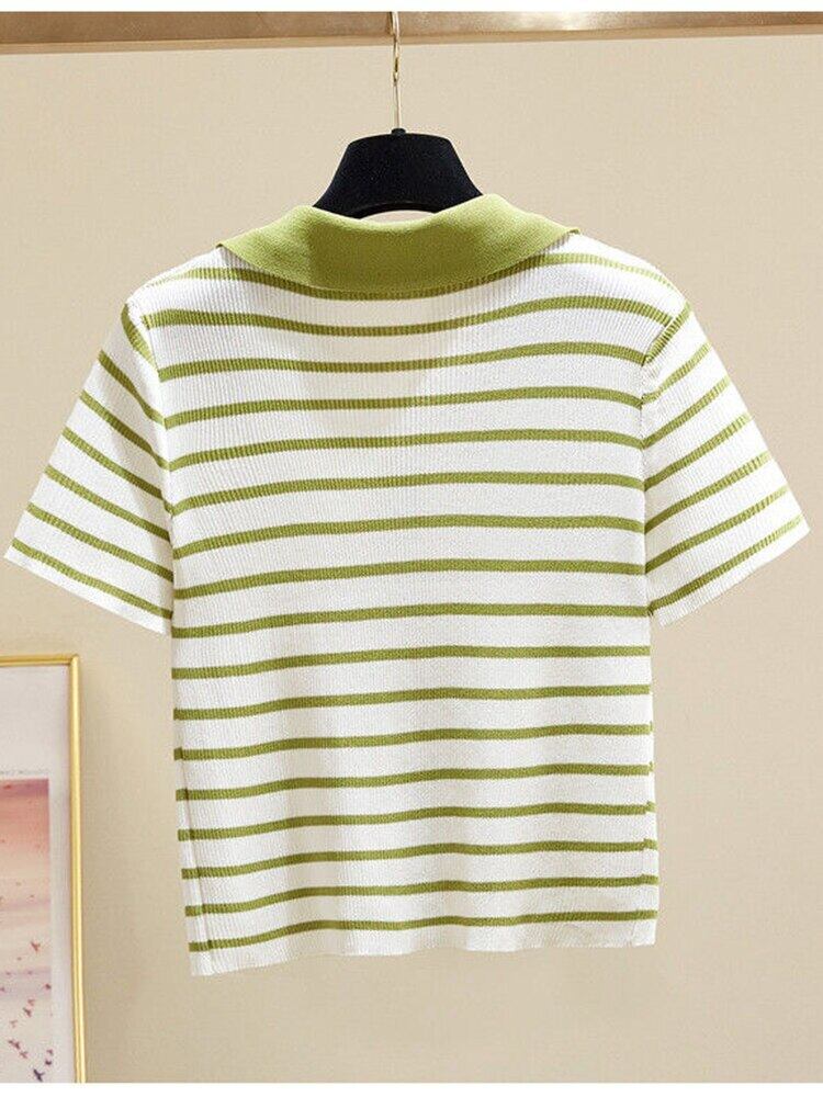 ニットトップスストライプ女性 Tシャツターンダウン襟半袖 Tシャツ 2022 夏ボタンアップトップ服 Tシャツ ショート ハーフスリーブ サマー 夏物 Son68414938966