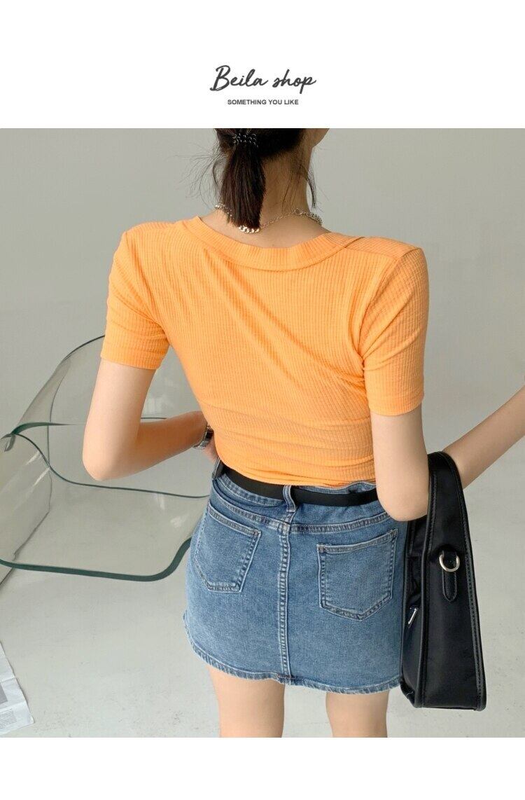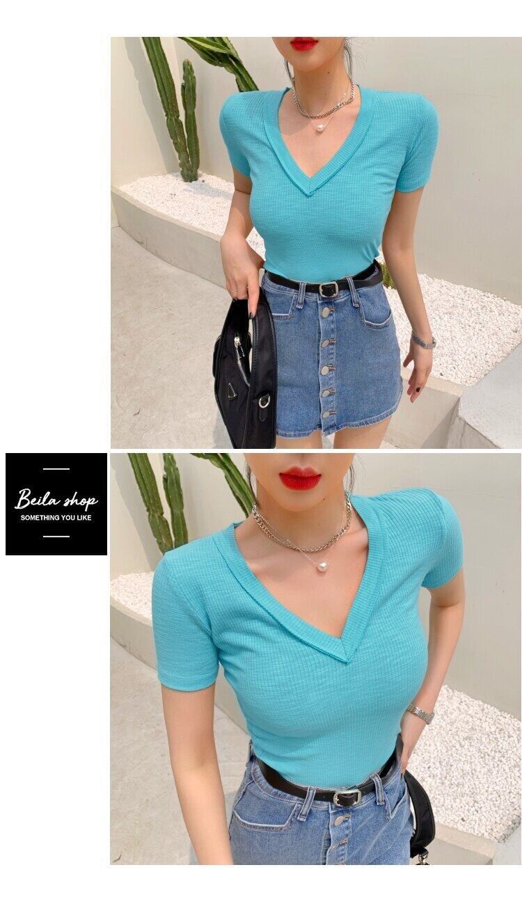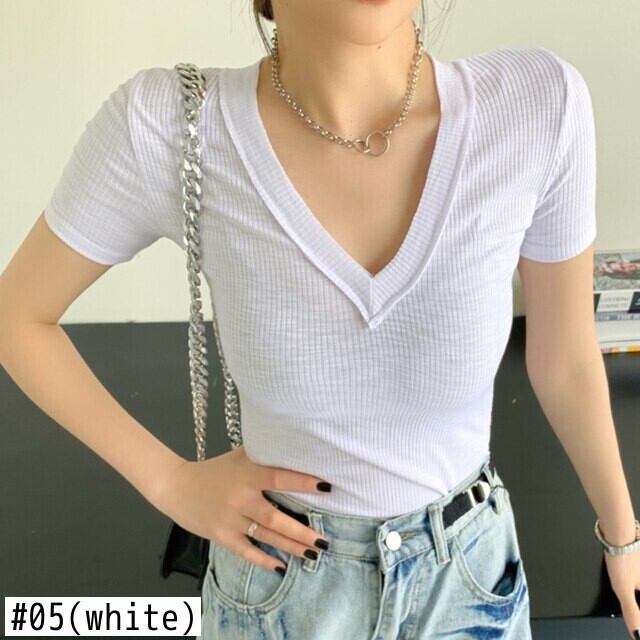 LJSXLS スレッドセクシーな V ネック Tシャツ女性スタイルトップス半袖 Tシャツの女性の服固体 Tシャツ 2021 夏 ショート ハーフスリーブ サマー 夏物 Vネック ソリッドカラー Son2254854131
