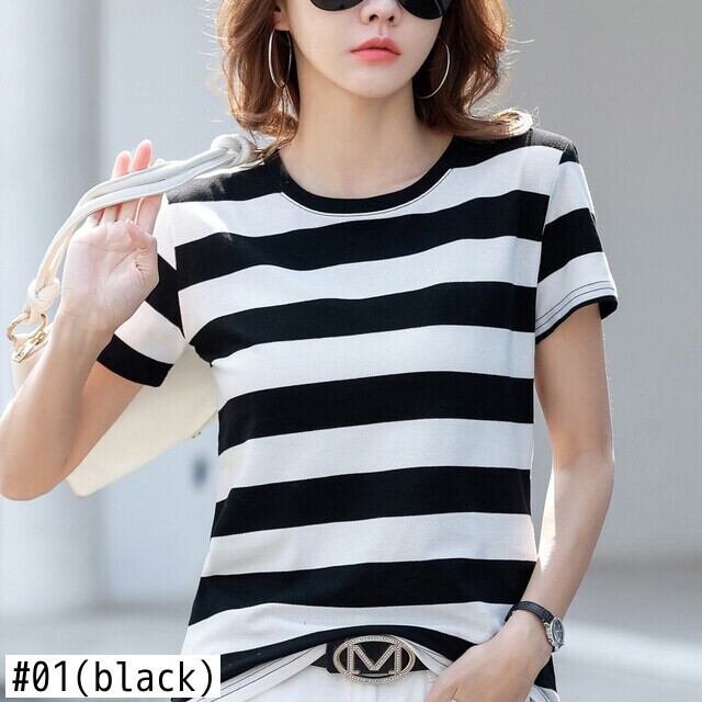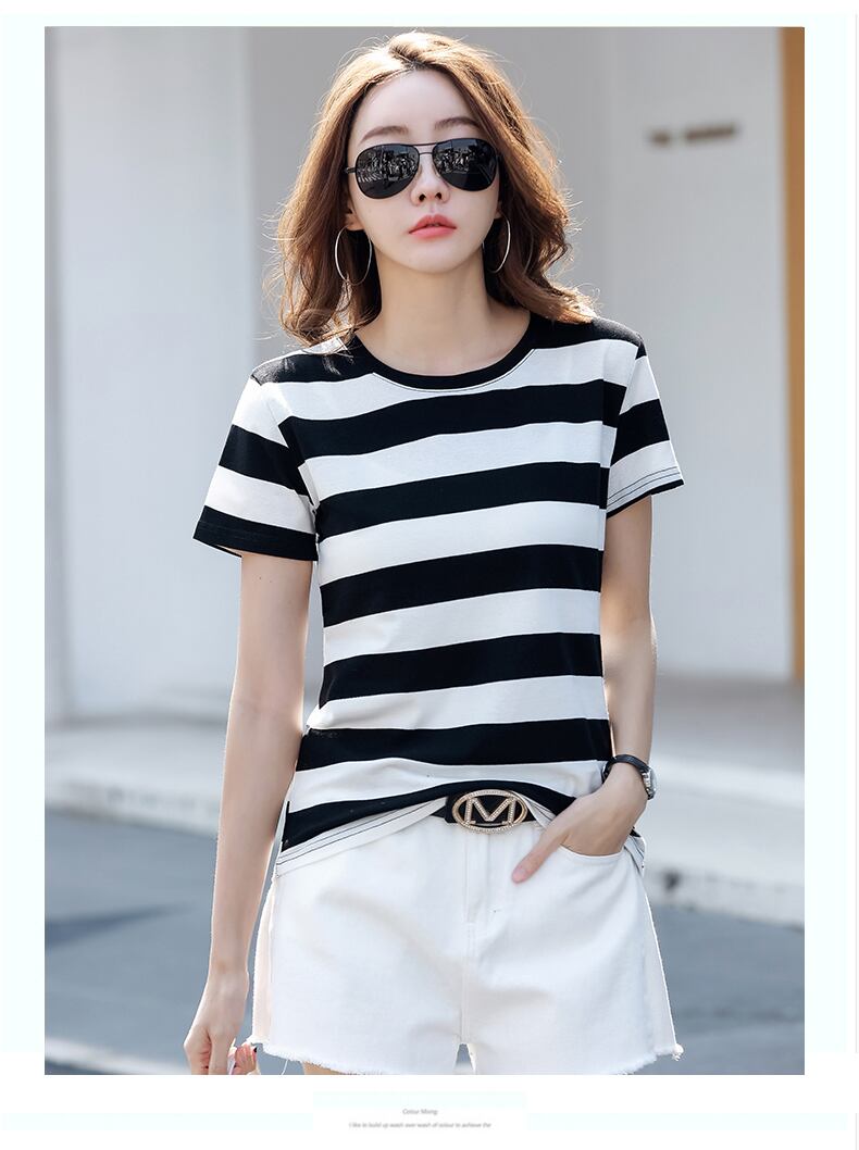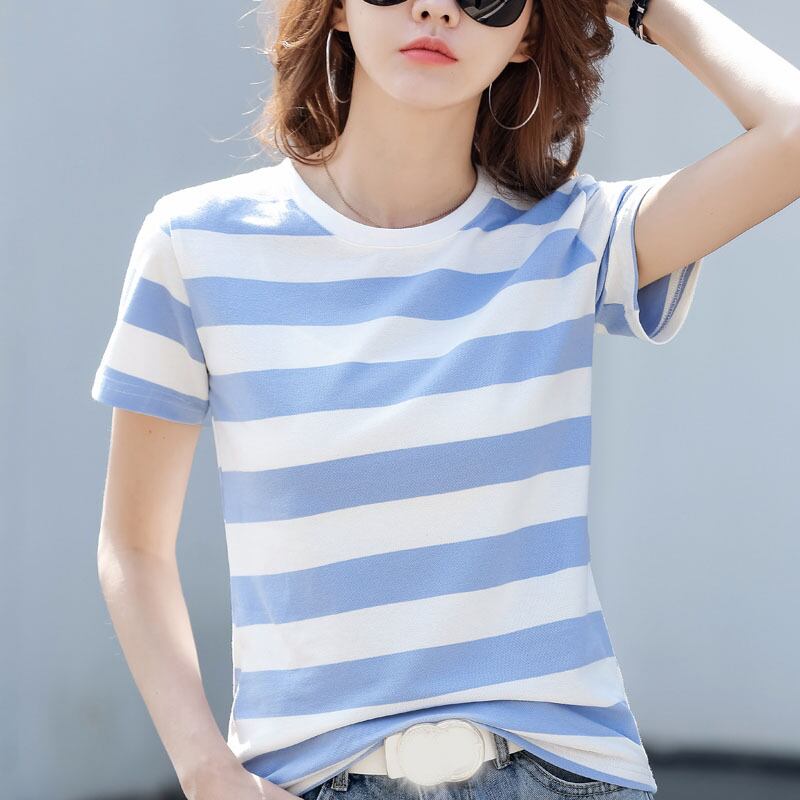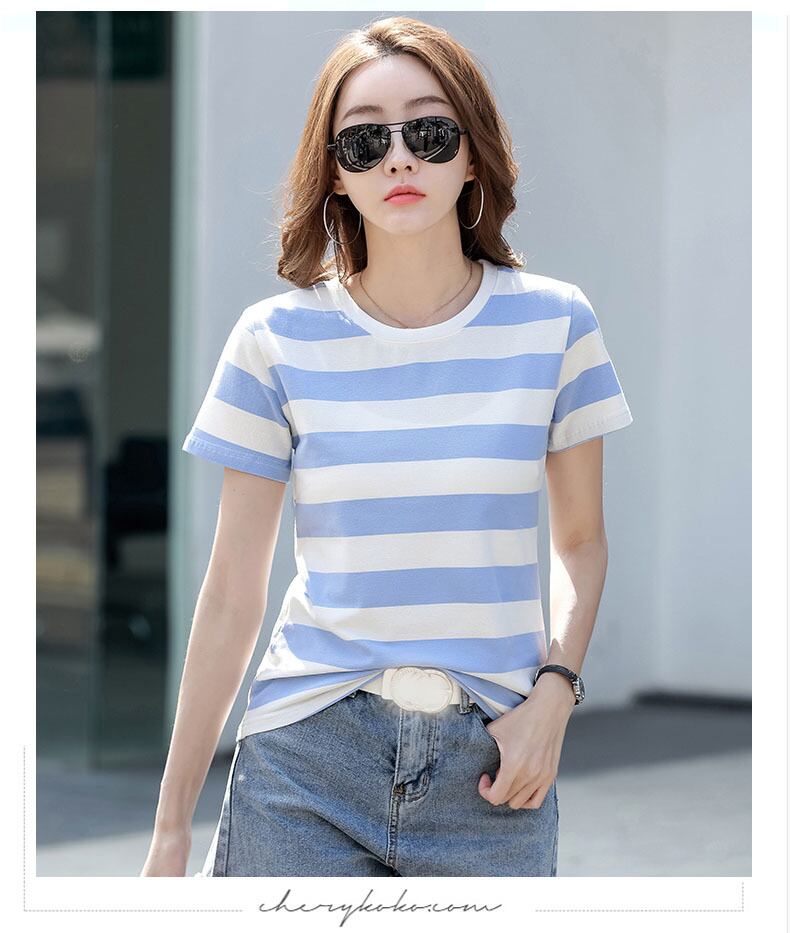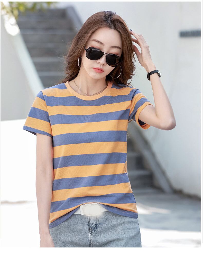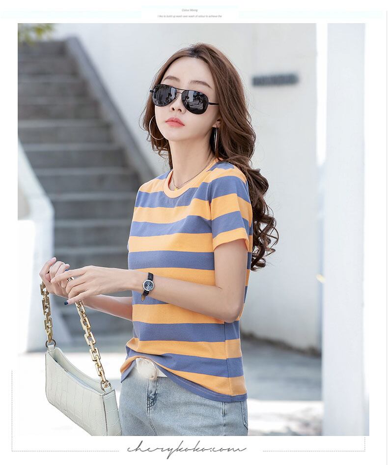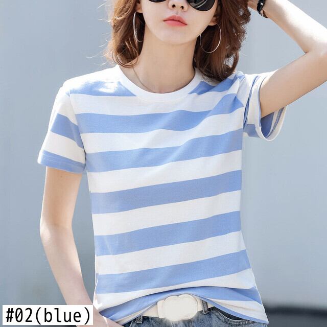 ストライプ Tシャツ半袖 Tシャツスタイルの女性の綿 Tシャツ O ネック Tシャツ夏トップス女性 2022 ショート コットン ハーフスリーブ サマー 夏物 Oネック Son2083330937