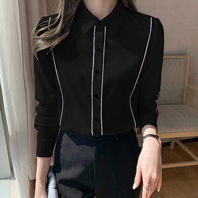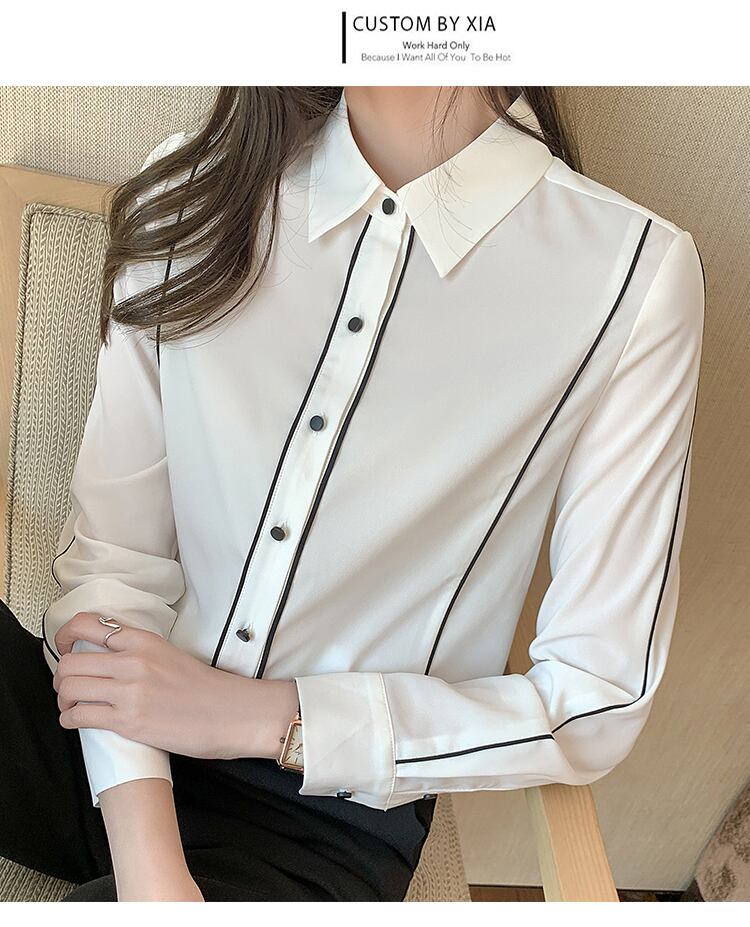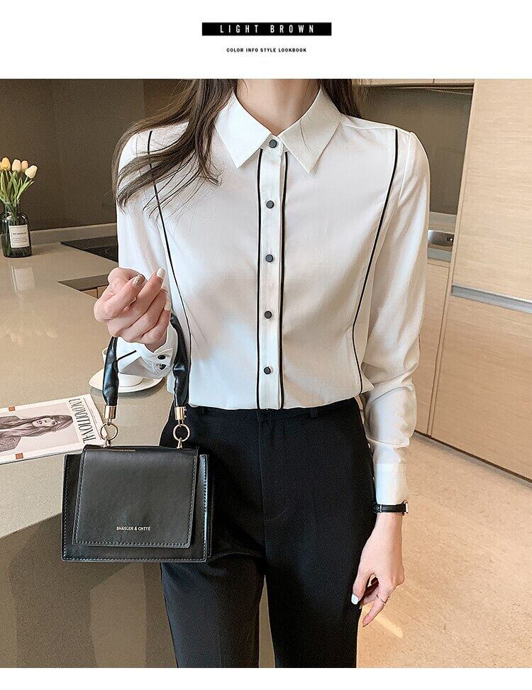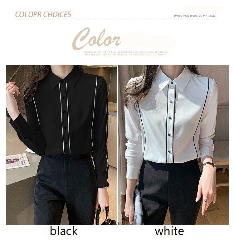 LJSXLS ターンダウン襟シャツ女性シフォンブラウス 2022 ボタン秋のトップス服レディースシャツ長袖 ロング オータム 秋物 Son13861509524