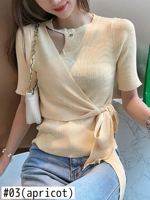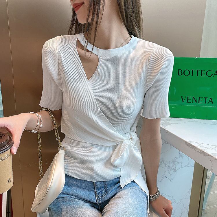 不規則なレーストップ女性 Tシャツ女性服白半袖 Tシャツ 2022 夏の基本的なニット Tシャツ ショート ホワイト ハーフスリーブ サマー 夏物 Son65834193179