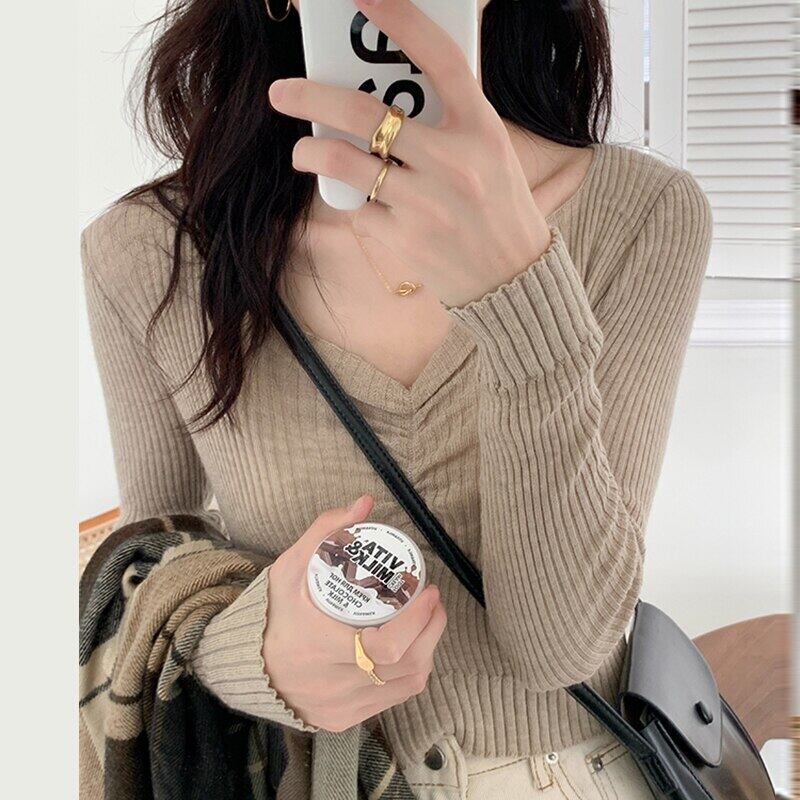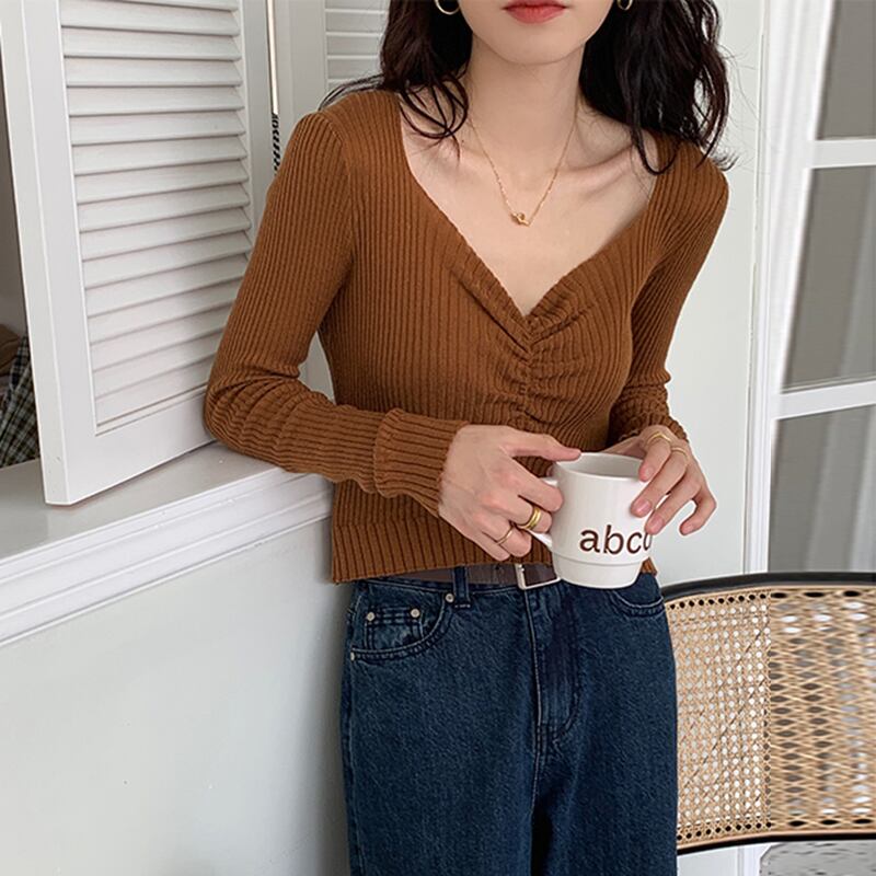 LJSXLS 2021 秋シャーリング V ネックセーターニット女性セーター冬白トップス女性プルオーバージャンパープル ホワイト オータム 秋物 ウィンター 冬物 Vネック Son95607178583