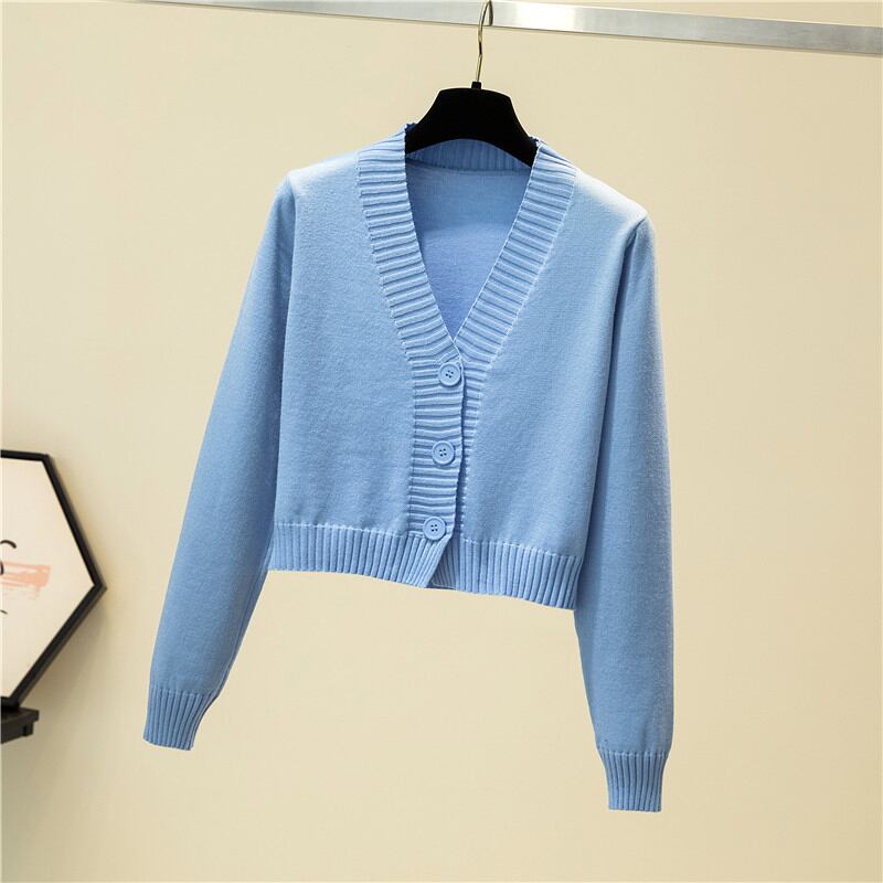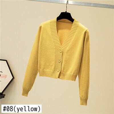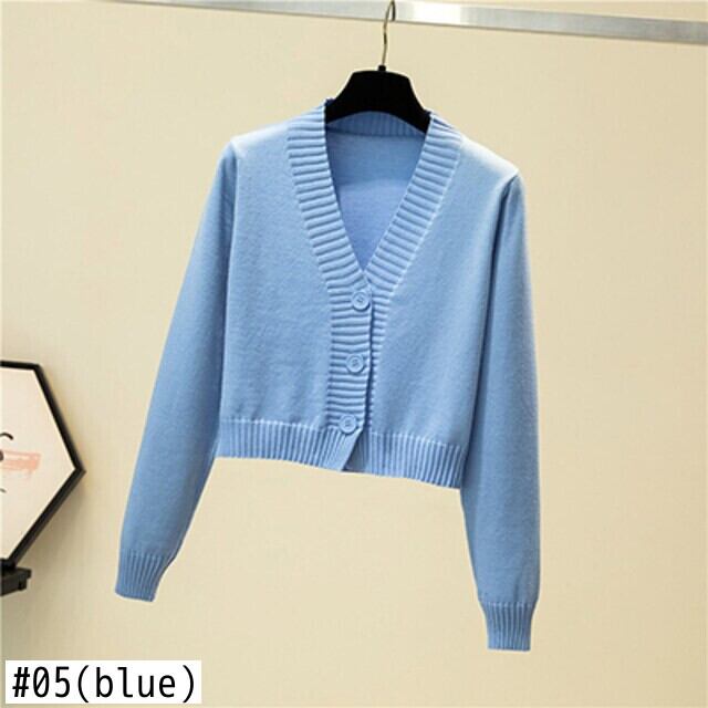LJSXLS V ネックカーディガン女性長袖ストリートクロップトップセーター秋固体生き抜くトップニットカーディガン 2022 冬 ロング ウィンター 冬物 Vネック ソリッドカラー Son30009036259