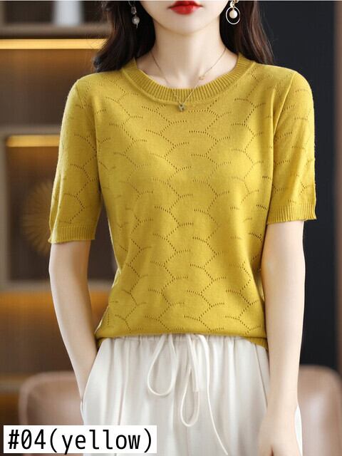 中空アウトニット半袖 Tシャツ女性 O ネックプルオーバー Tシャツ夏薄いピンクトップス女性服 Camisetas ショート ハーフスリーブ サマー 夏物 Oネック Son11983683190