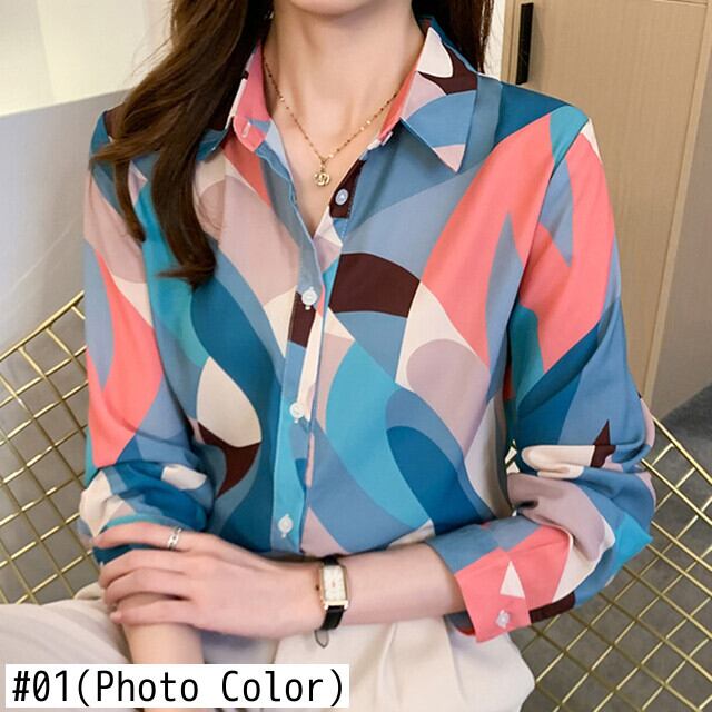 2022 春プリントブラウスシャツ女性長袖ターンダウンコラシフォントップス女性服 ロング スプリング 春物 Son78749672058