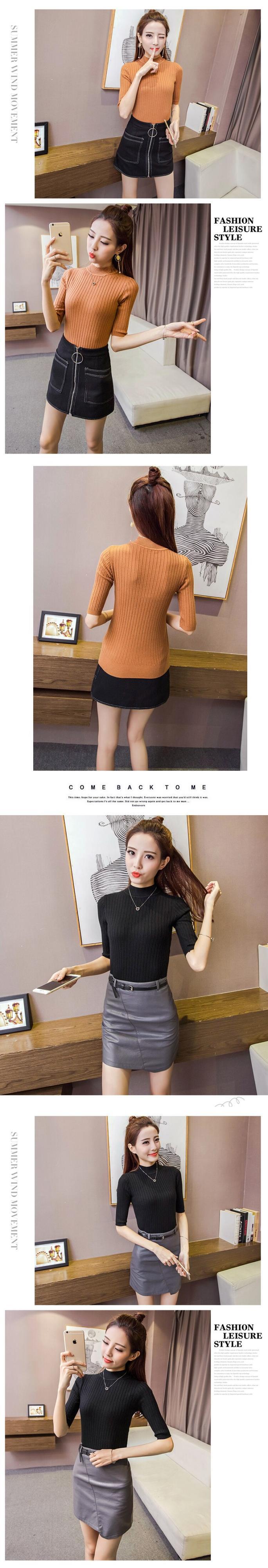2022 夏ニット Tシャツハーフタートルネックの女性 Tシャツハーフスリーブトップ固体女性 Tシャツ Camisetas デ 半袖 サマー 夏物 ソリッドカラー Son97175202887