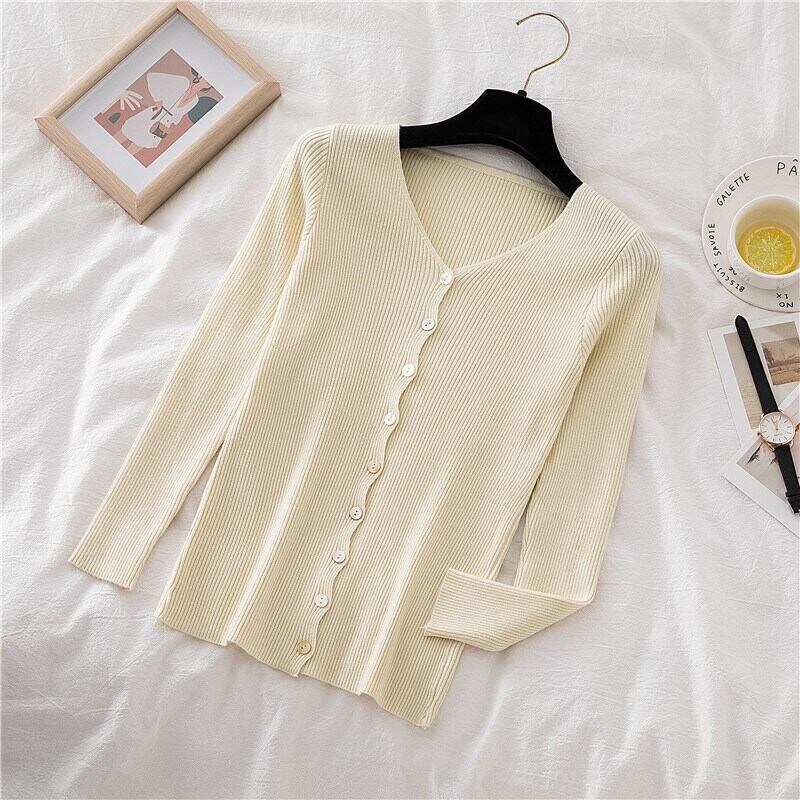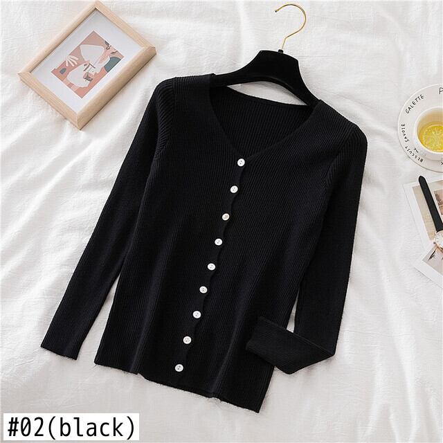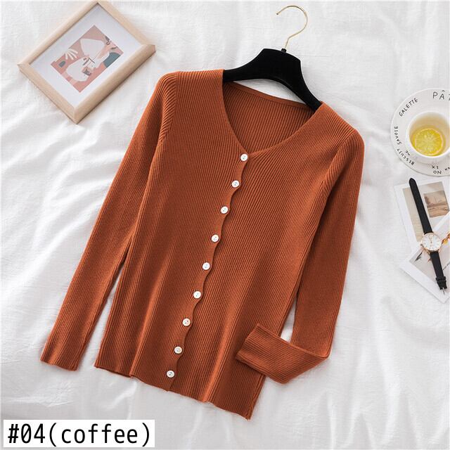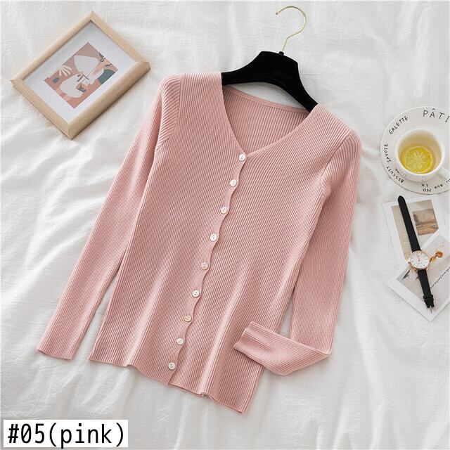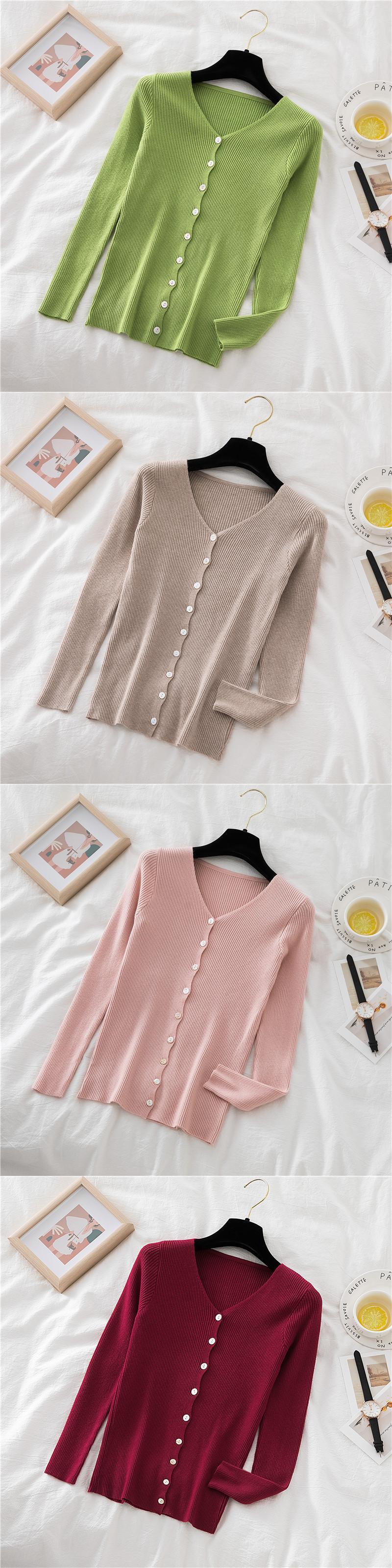 LJSXLS 2021 秋リブスリムセーター V ネック女性ニットカーディガンセクシーな長袖ボタントップセーター Feminino ロング オータム 秋物 Vネック Son27510996406
