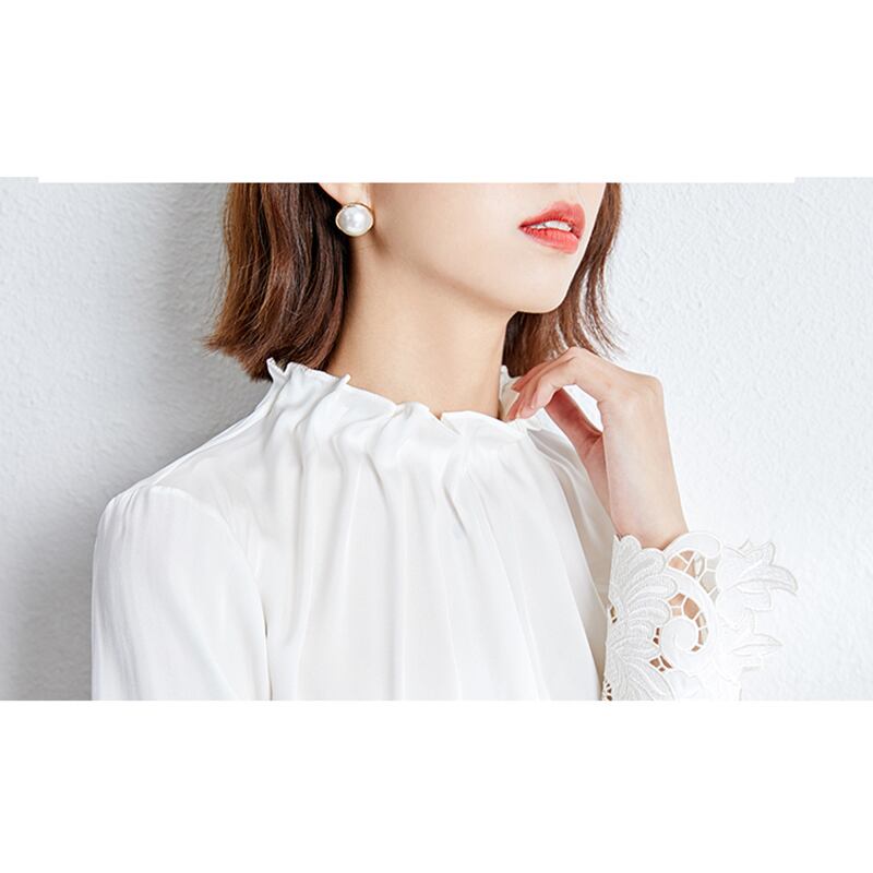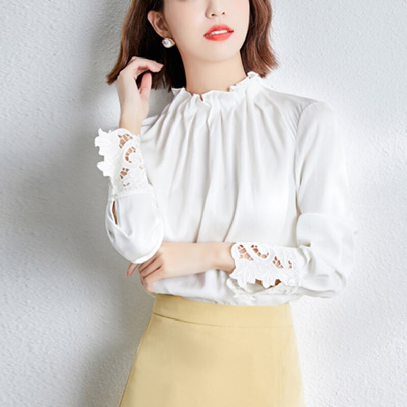 LJSXLS 春秋の女 ロング ホワイト シフォン 長袖 ブラウス スプリング 春物 オータム 秋物 Son69658521316