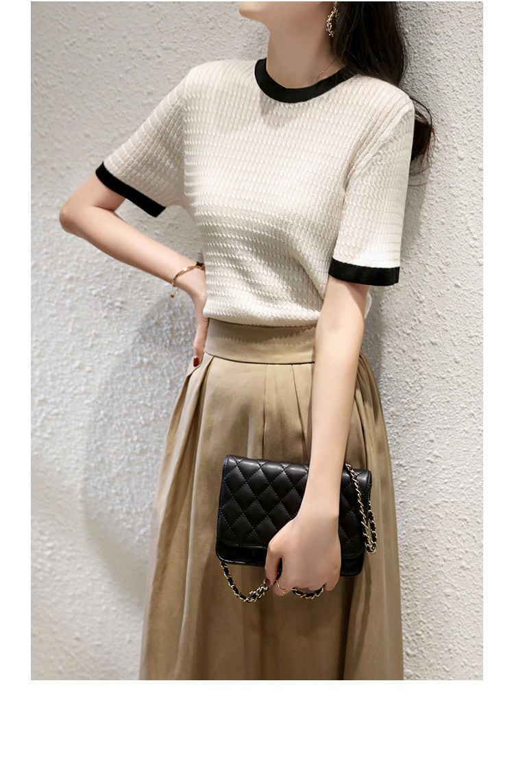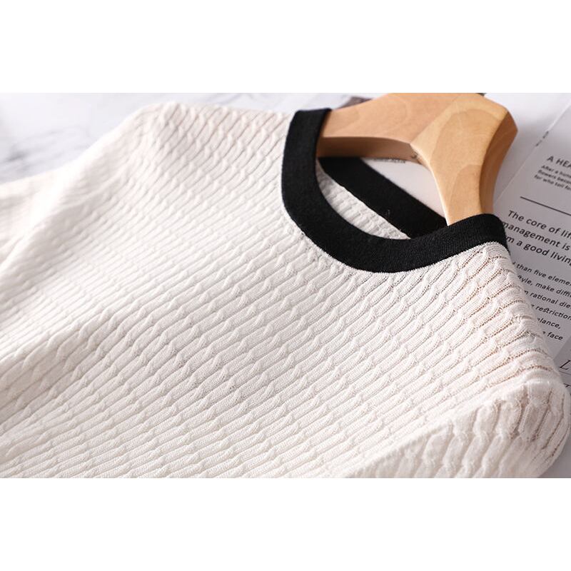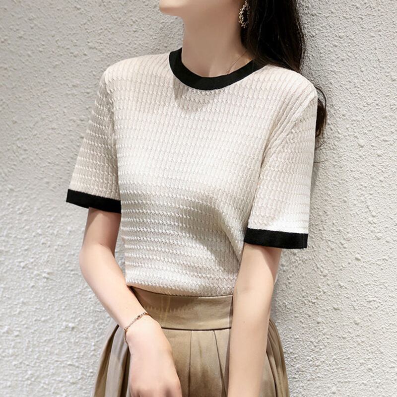 LJSXLS スリムトップス 2021 夏薄型ニット女性 O ネックセータープルオーバースタイルの基本的な女性白黒セーター ホワイト ブラック サマー 夏物 Oネック Son58759024287