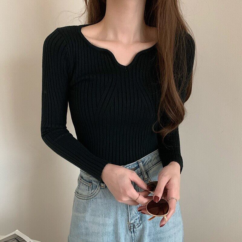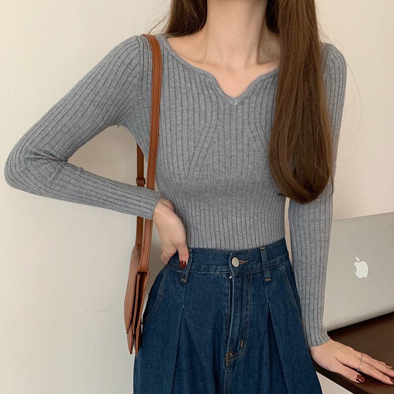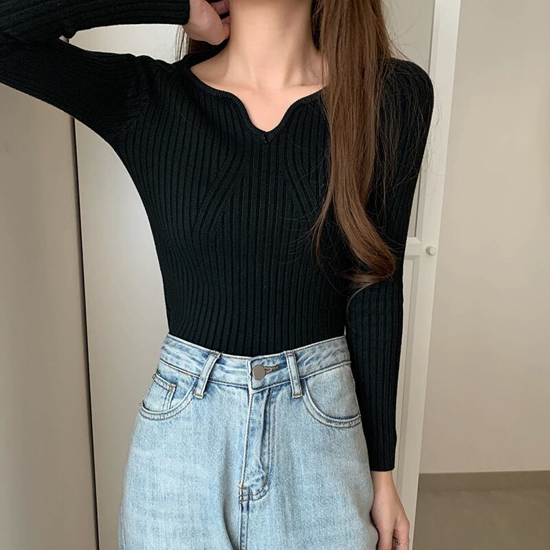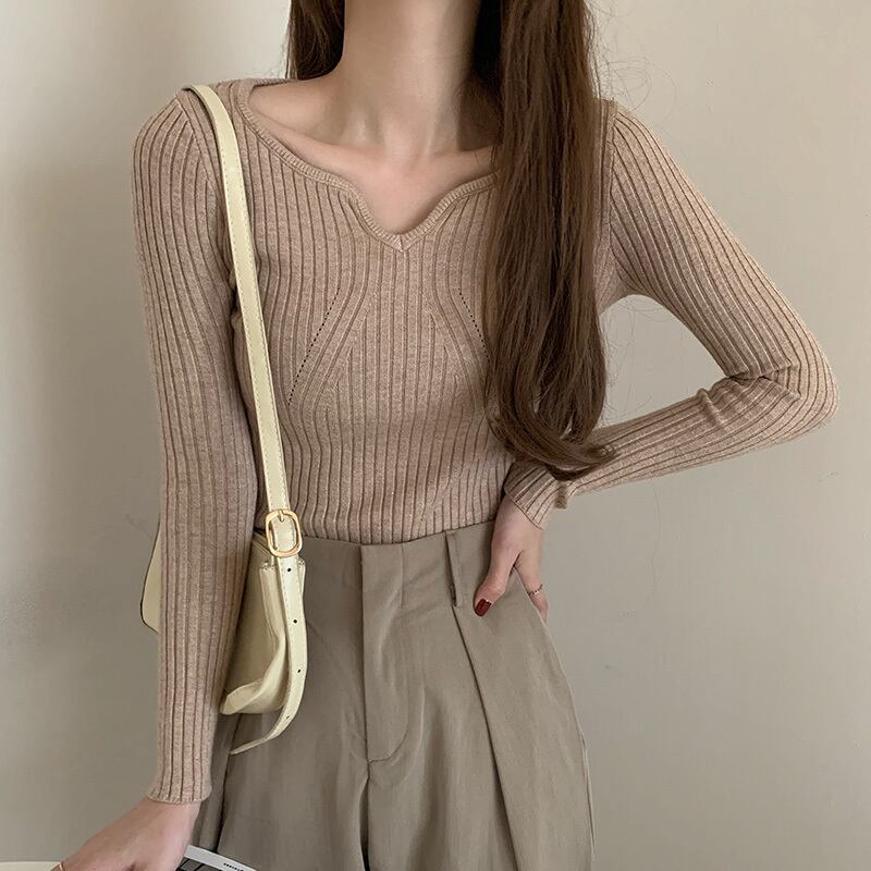 LJSXLS ニットセーター長袖セクシーな V ネックの女性スリムタイトなニットセータープルオーバートップス 2021 ロング Vネック Son21524321536