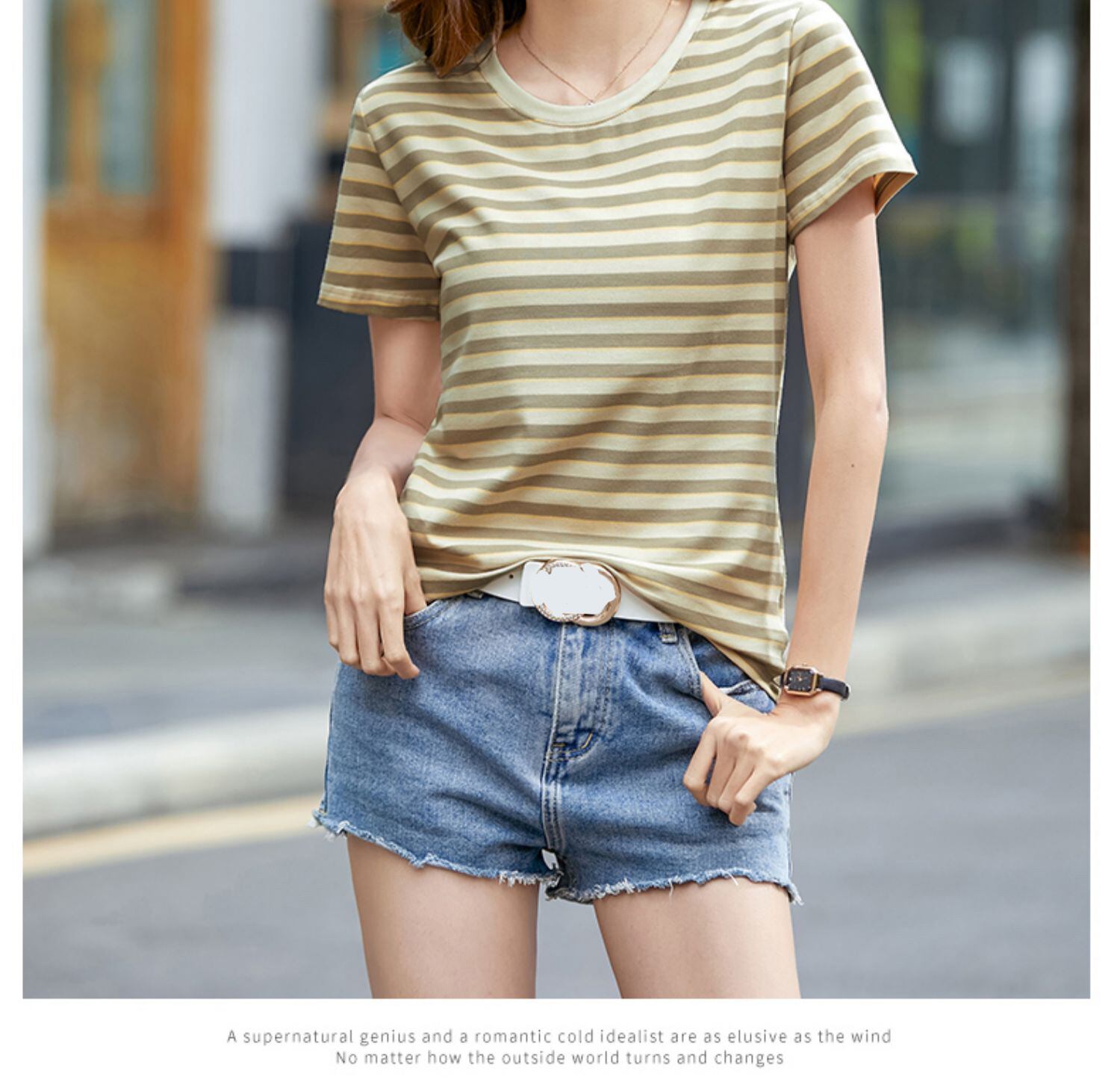 Tシャツ綿 Tシャツ女性ストライプ Tシャツ 2022 夏半袖 Tシャツスタイル O ネックトップス ショート コットン ハーフスリーブ サマー 夏物 Oネック Son140692478