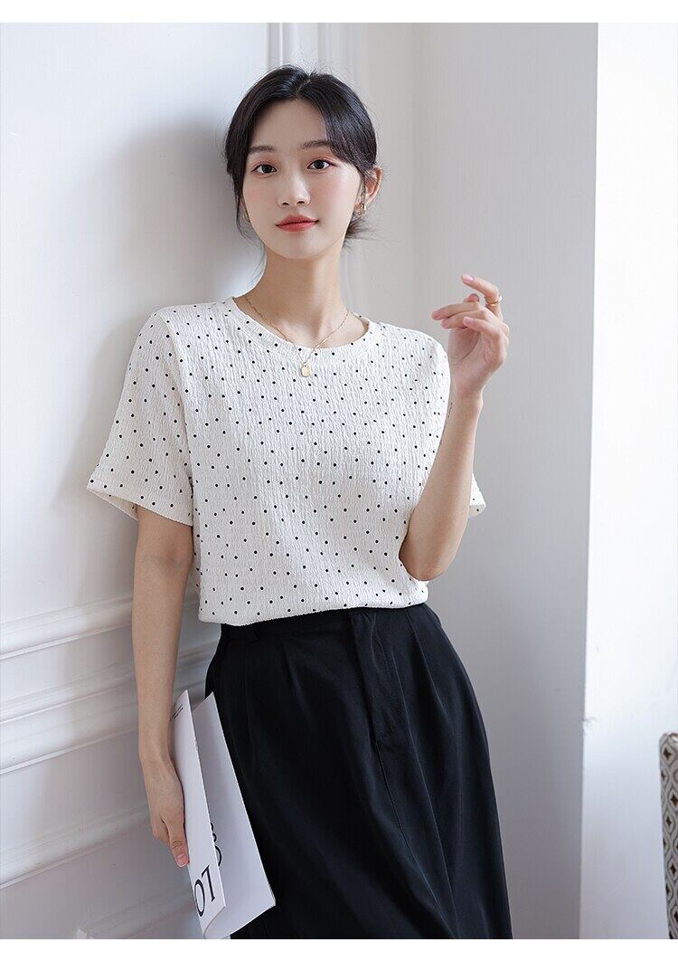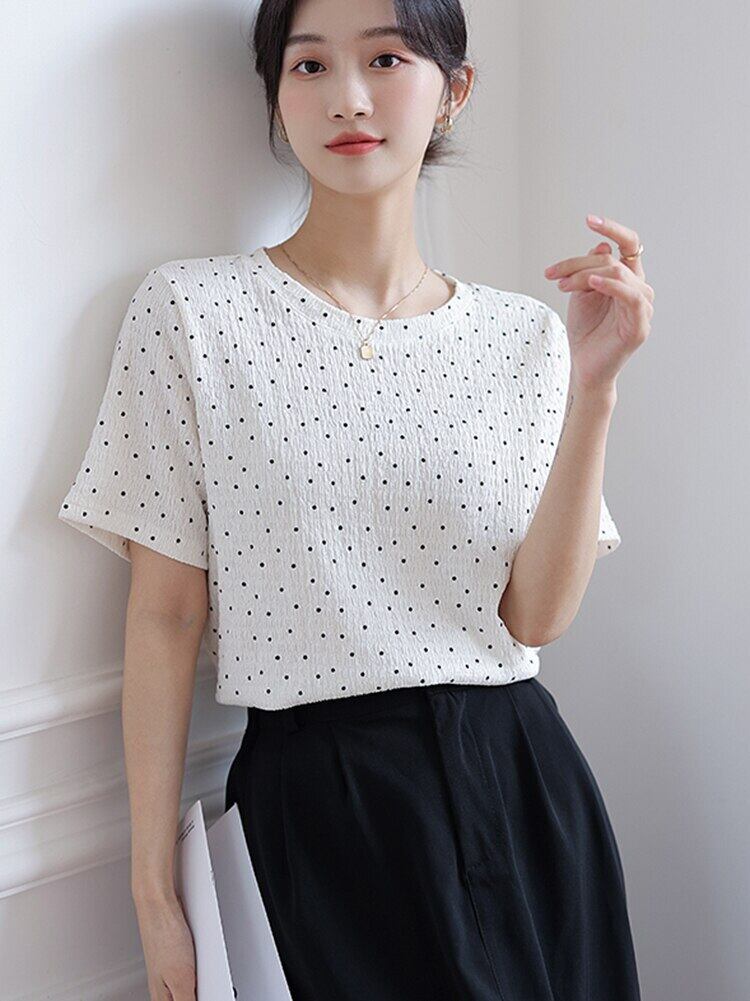 2022 夏水玉シフォンブラウス O ネックトップス女性半袖ルーズシャツレディースデ ショート ハーフスリーブ サマー 夏物 Oネック Son46030616262