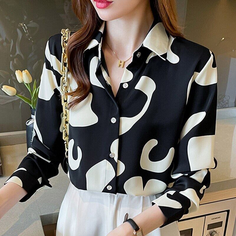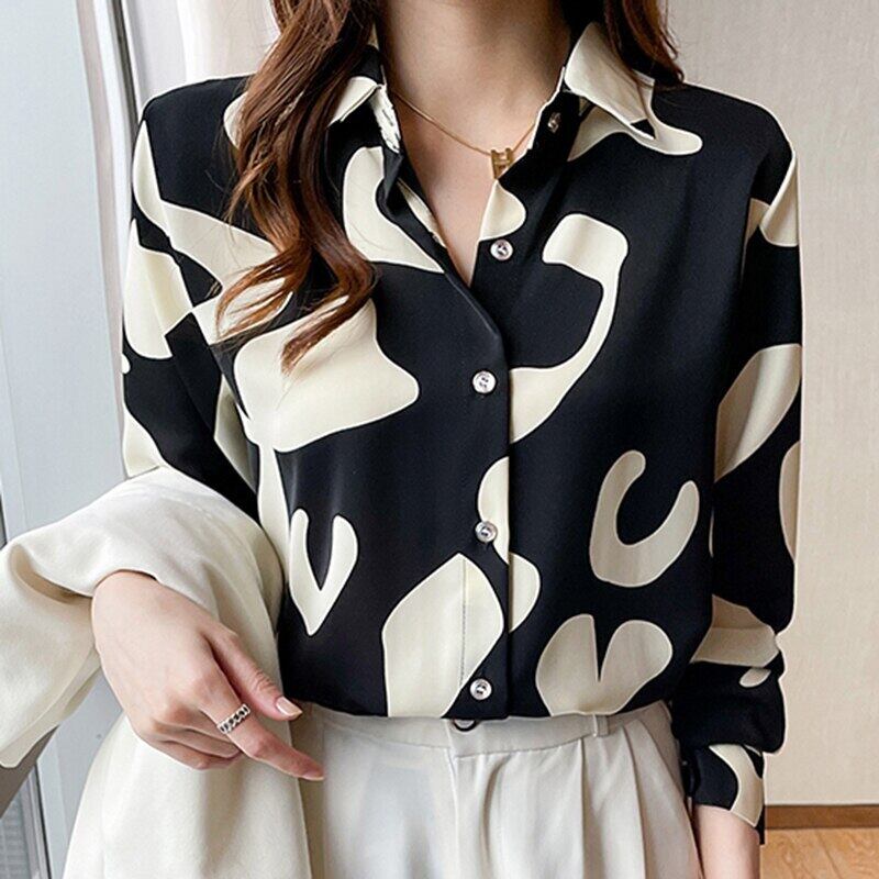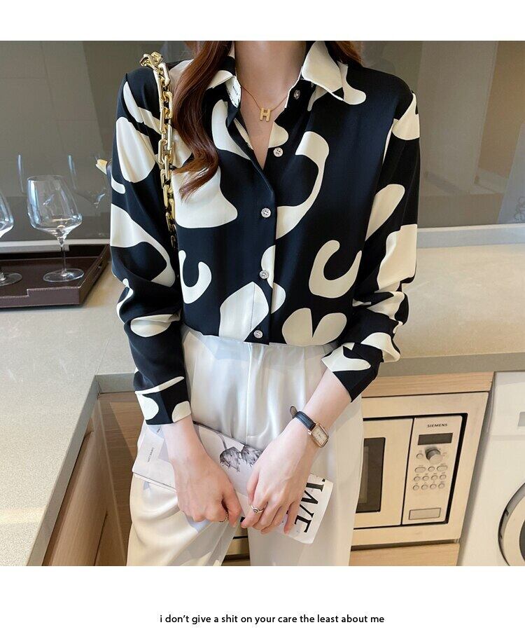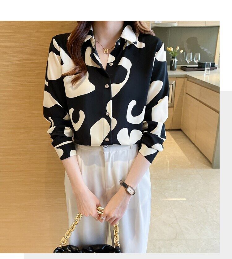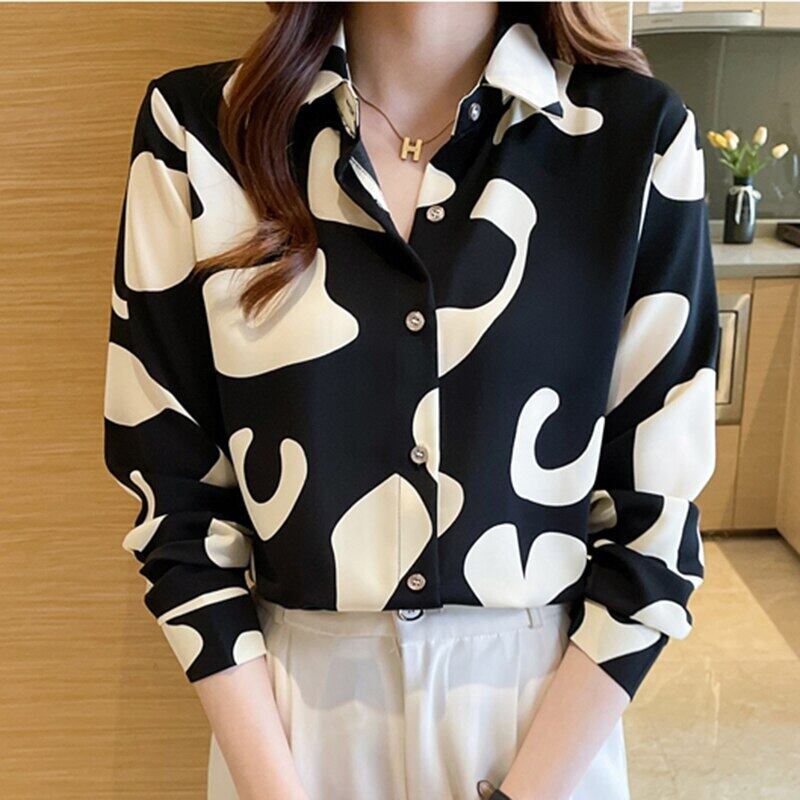 プリントシフォンブラウス女性長袖シャツ女性ターンダウン襟レディーストップス 2022 春の女性 ロング スプリング 春物 Son83647587280