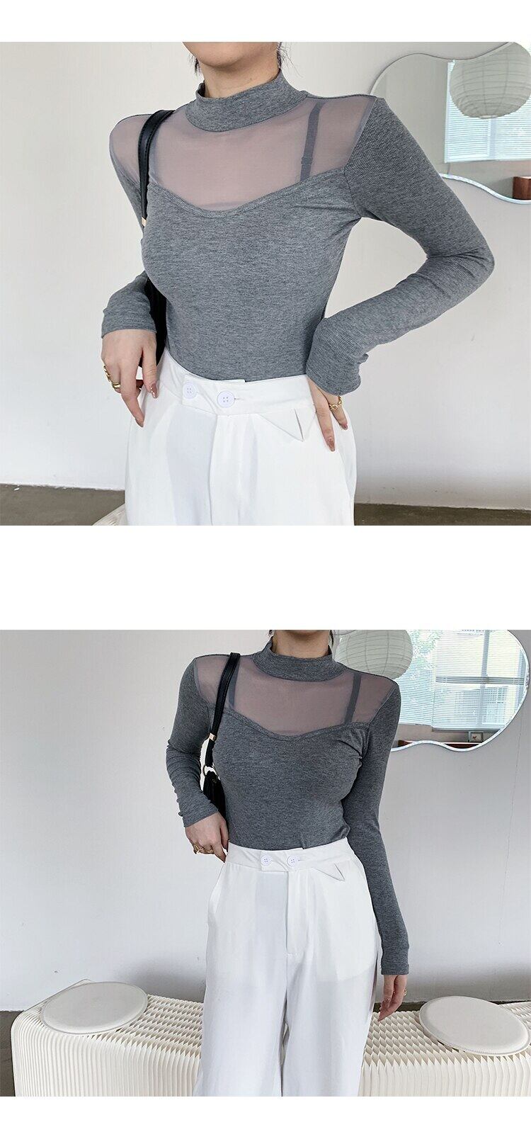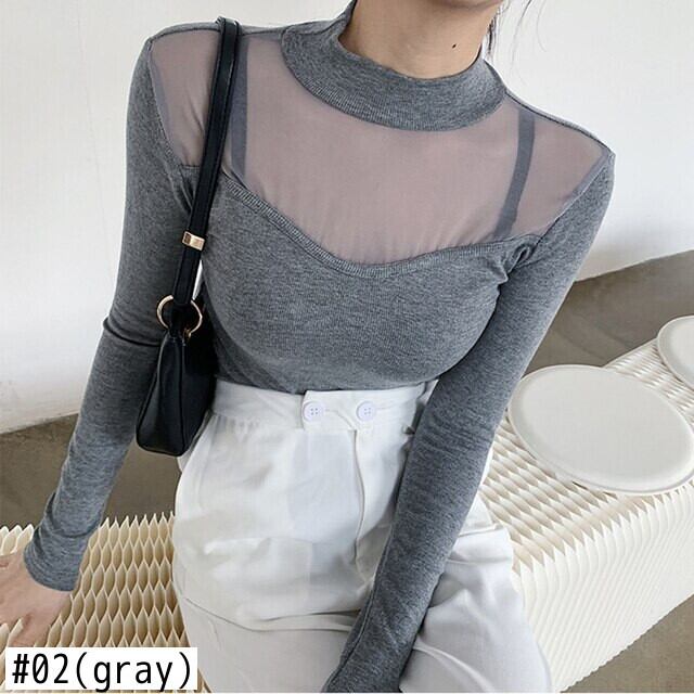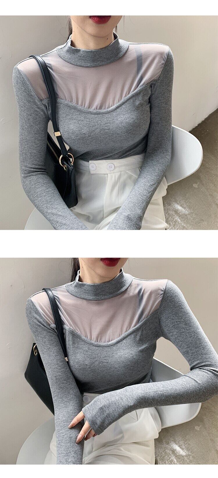 女性 Tシャツガーゼパッチワーク女性 2022 ハーフタートルネック長袖 Tシャツ春秋の服トップ ロング スプリング 春物 オータム 秋物 Son42879770815