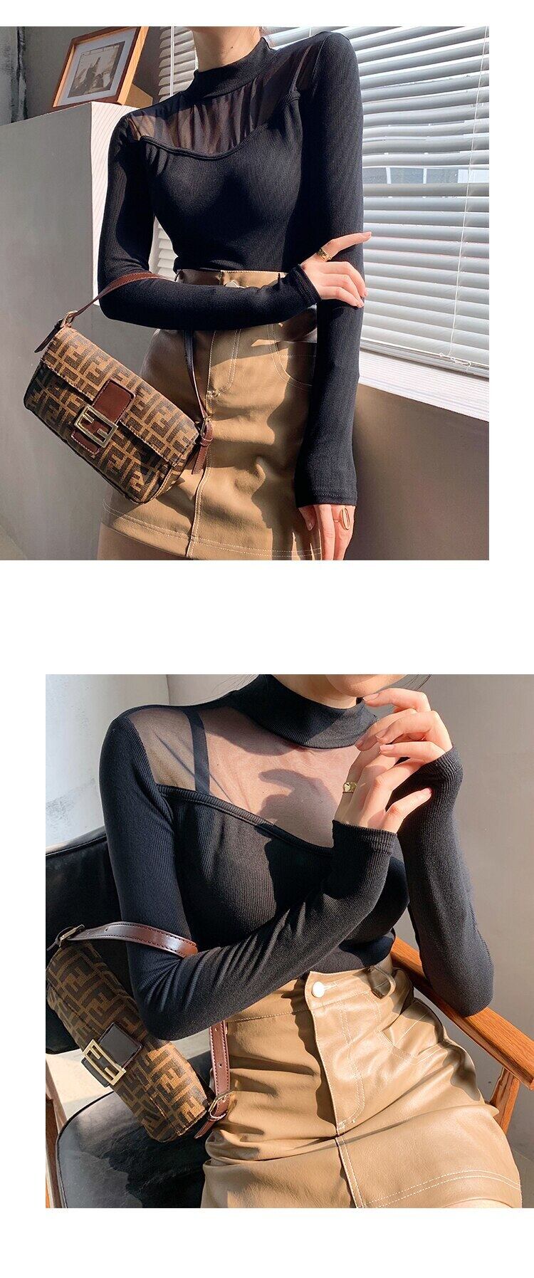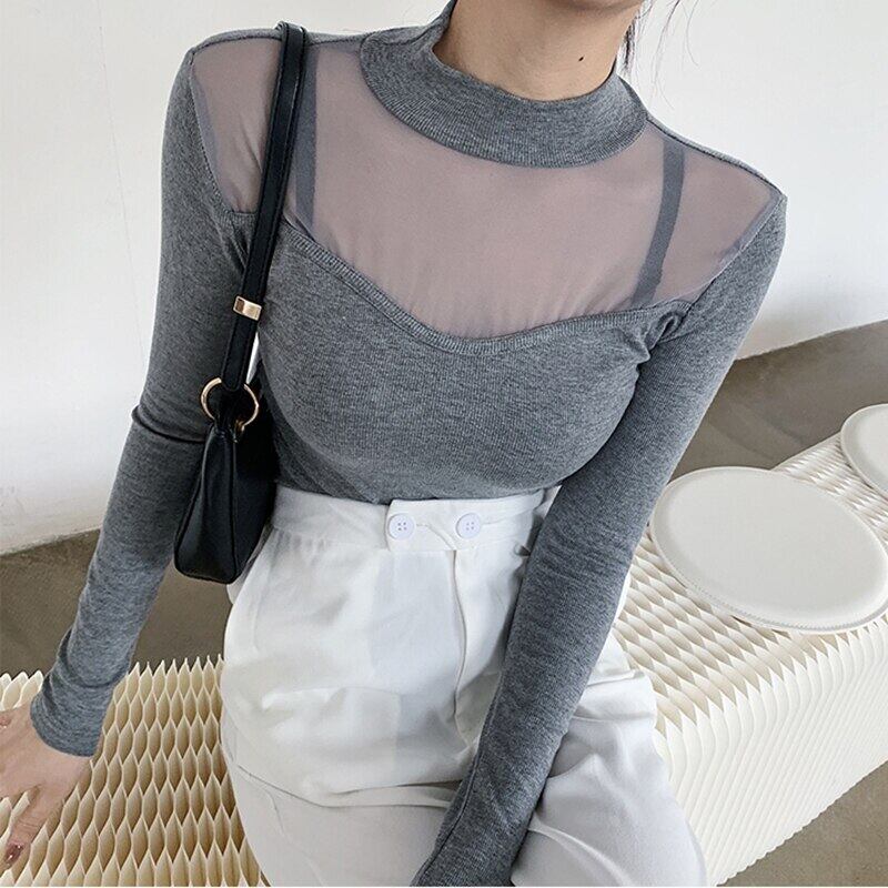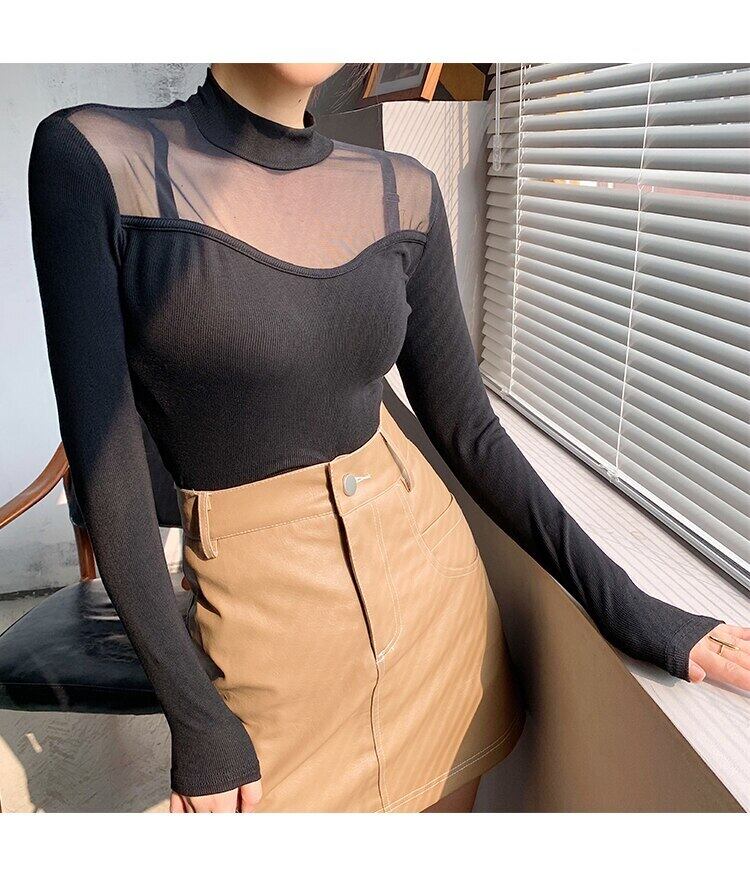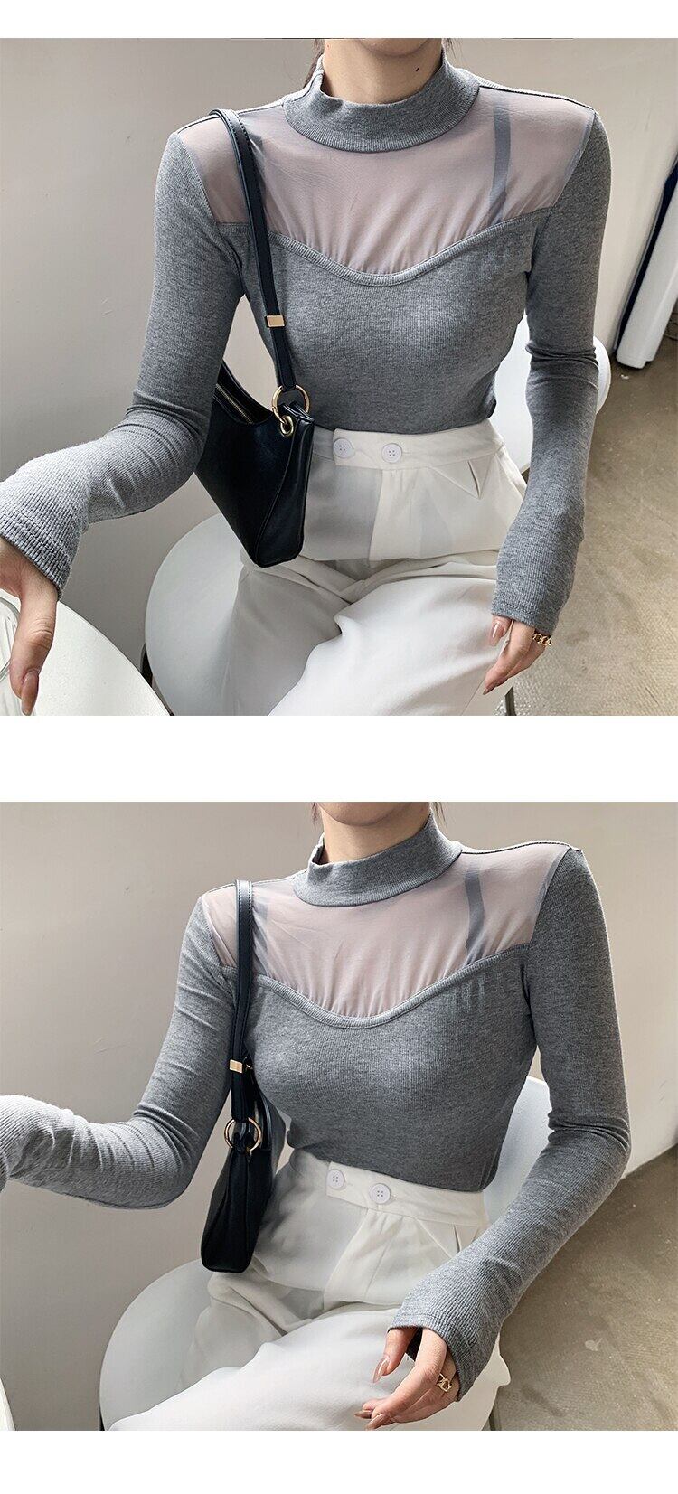 女性 Tシャツガーゼパッチワーク女性 2022 ハーフタートルネック長袖 Tシャツ春秋の服トップ ロング スプリング 春物 オータム 秋物 Son42879770815