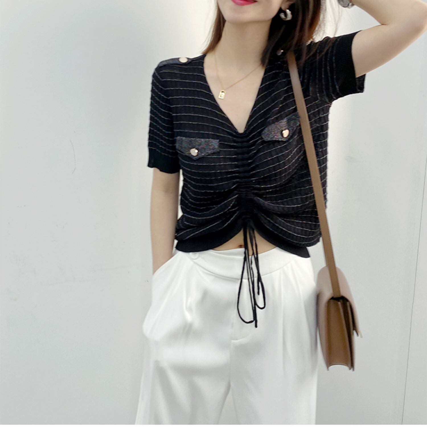 女性巾着クロップトップ Tシャツ V ネック Tシャツ女性服 2022 夏白半袖 Tシャツ Tシャツ ショート ホワイト ハーフスリーブ サマー 夏物 Vネック Son59510051324