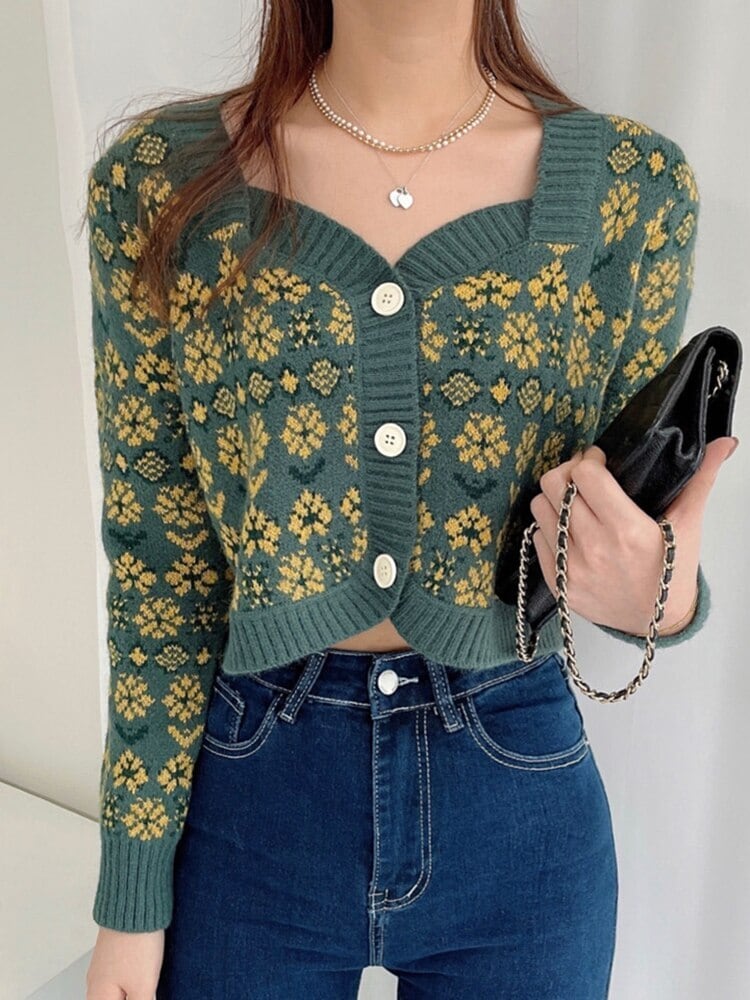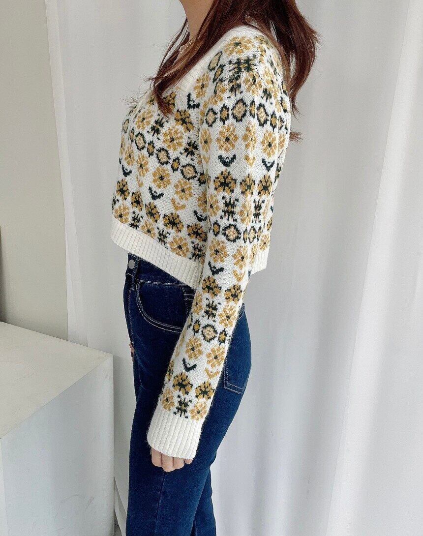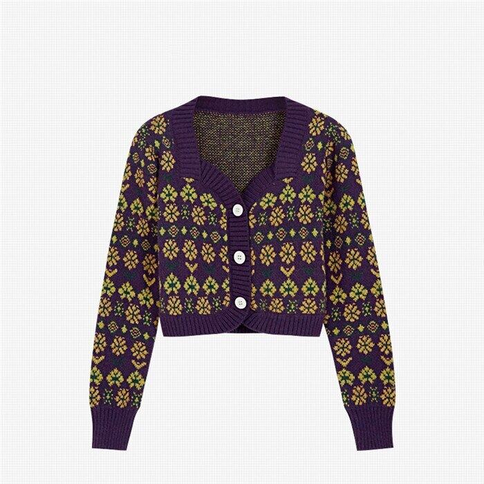 花 V ネック長袖女性ニットカーディガンセーター秋冬服セクシーなクロップドトップス女性のセーターデ ロング オータム 秋物 ウィンター 冬物 花柄 Vネック Son20895270004