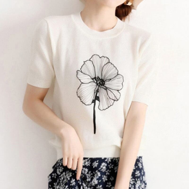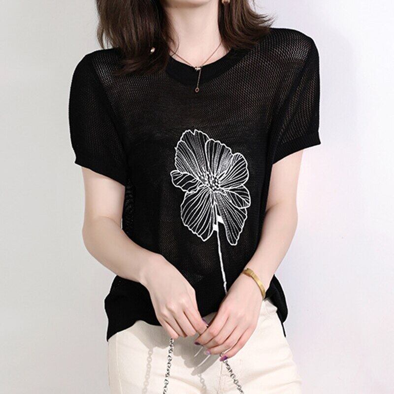 Haut 花柄 Tシャツ女性の夏の半袖 Tシャツの服の女性 2022 O ネックニットレディース Tシャツトップス ショート ハーフスリーブ サマー 夏物 Oネック Son47948405474