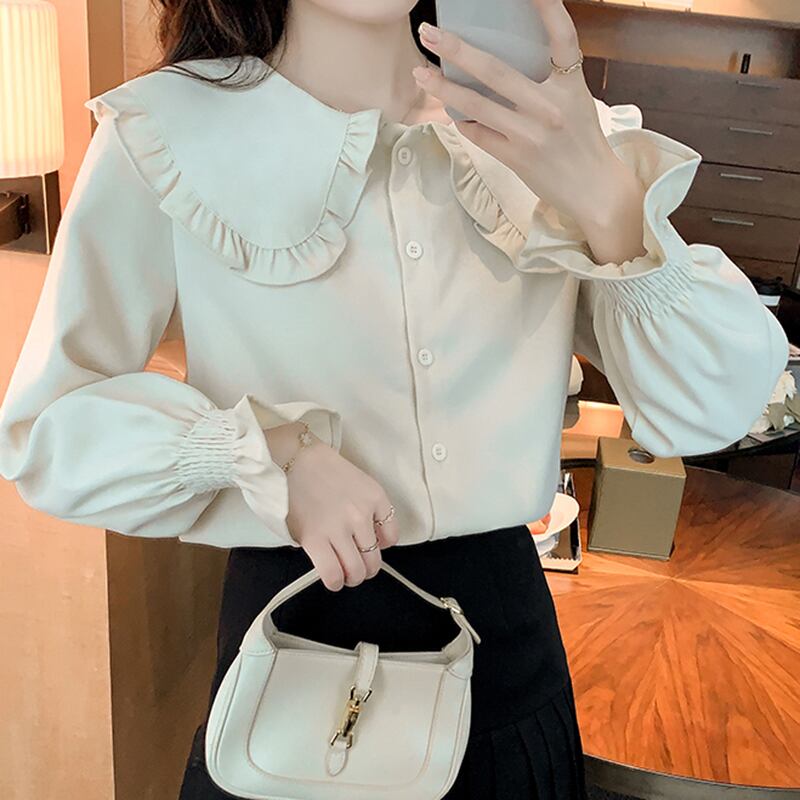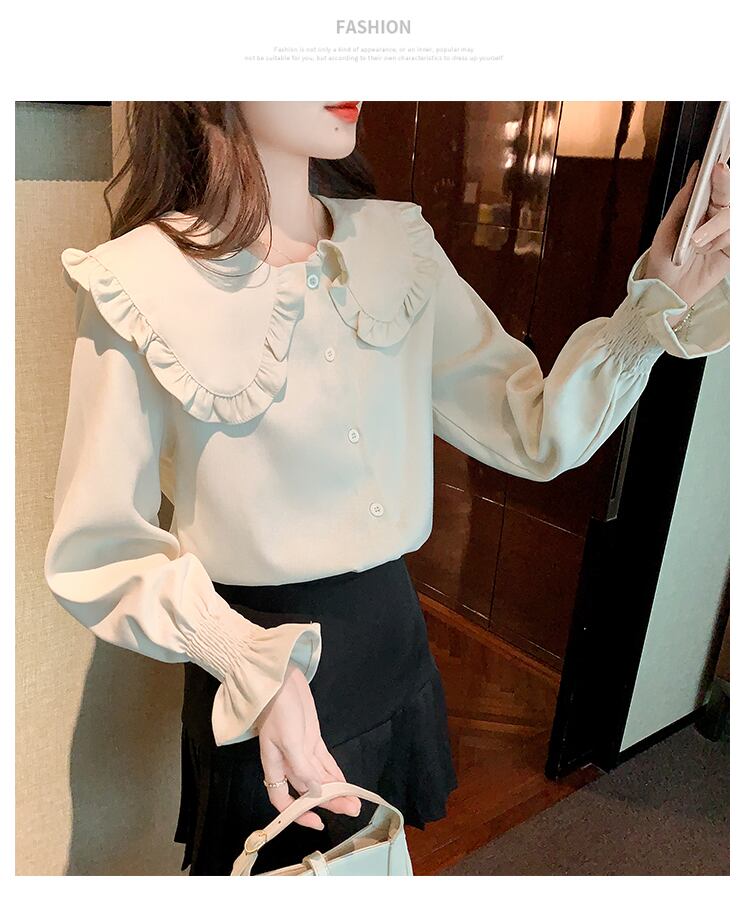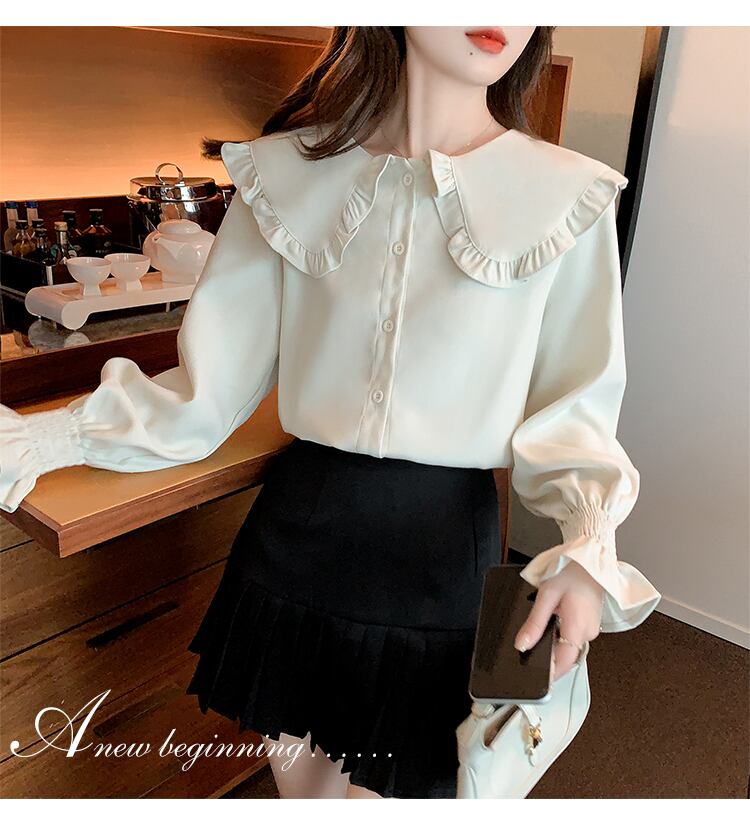 2022 スウィートピーターパン襟ブラウス女性白ブラウス婦人服トップス春固体長袖シャツ ロング ホワイト 大人ガーリー キュート カジュアル スプリング 春物 ソリッドカラー Son43643262921
