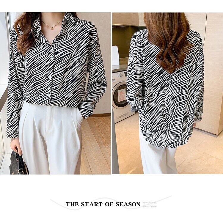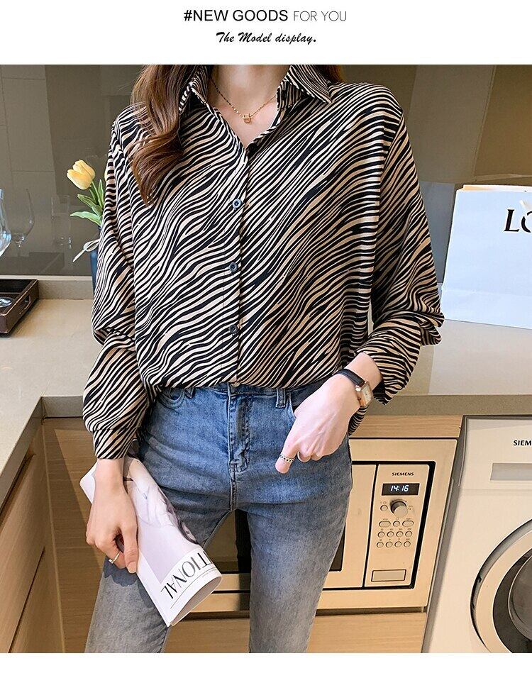 ブラウス 2022 春ヒョウ柄トップ女性長袖シャツターンダウン襟ブラウスシフォン Blusa ロング スプリング 春物 Son53864224503