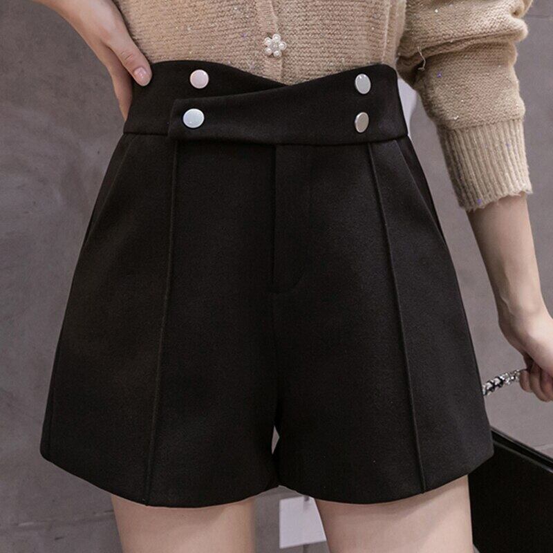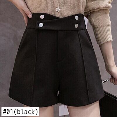 LJSXLS 黒ジッパーウールショーツ女性ウエストルーズオフィス女性ワイドレッグショーツ 2021 秋冬 ブラック オータム 秋物 ウィンター 冬物 ブルマー ワイドパンツ 会社 学校 通勤や通学にも Son75366635628