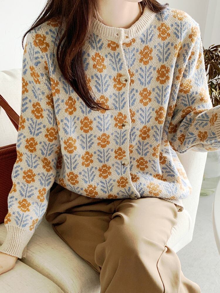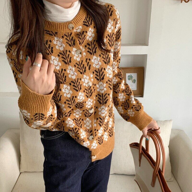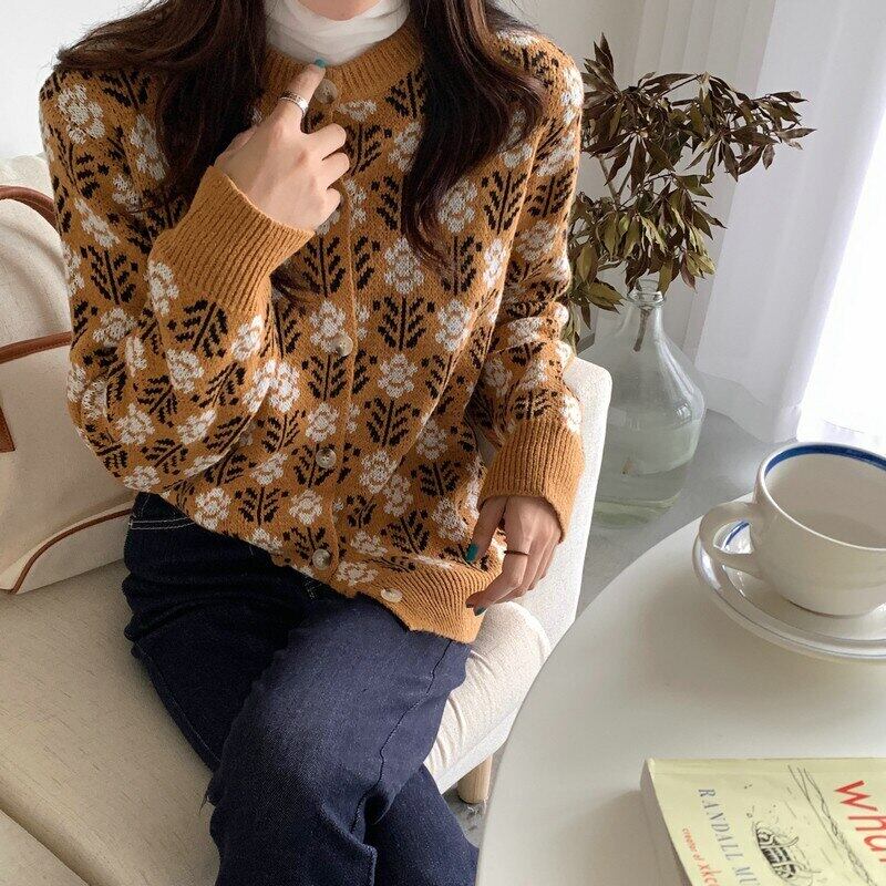 花柄ニットカーディガンセーター女性 2022 秋冬服ボタン長袖ニットトップス ロング オータム 秋物 ウィンター 冬物 Son11179515268