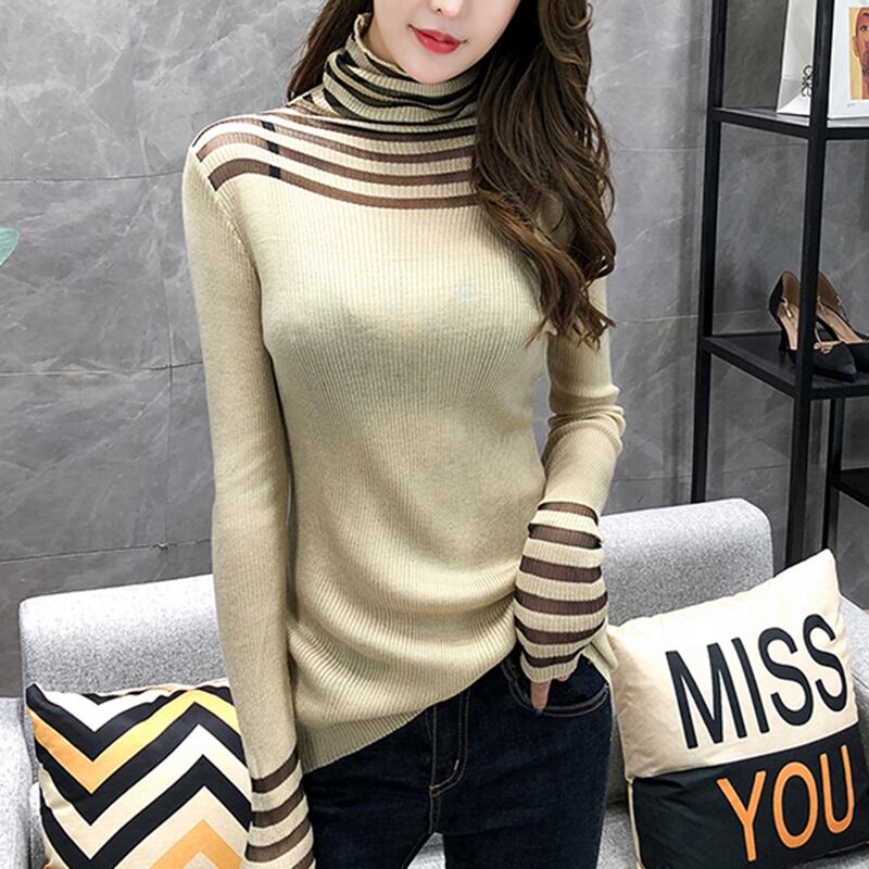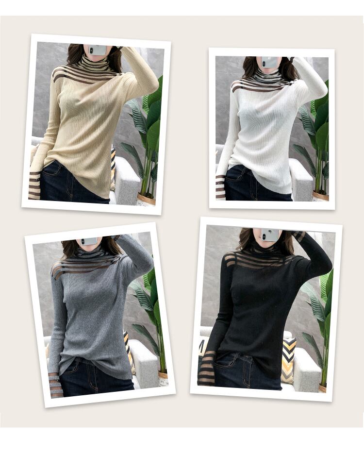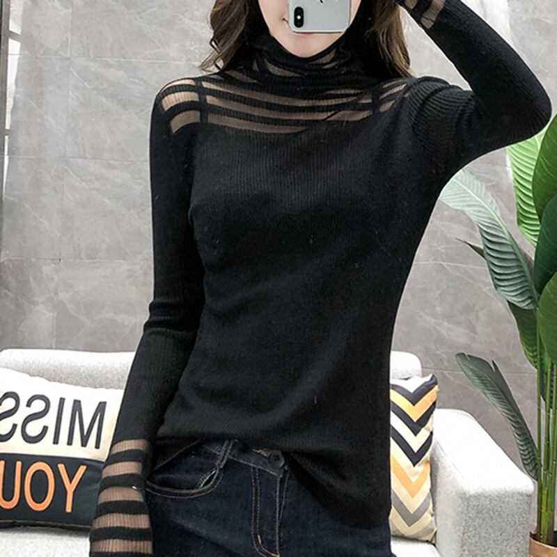 LJSXLS プルセクシーなメッシュパッチワークニットセーター女性長袖プルオーバー女性秋冬タートルネック服 ロング オータム 秋物 ウィンター 冬物 Son97485642905