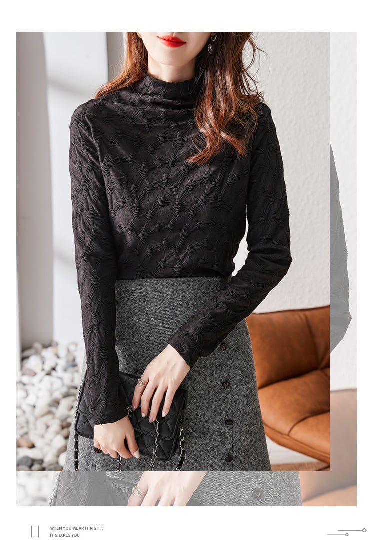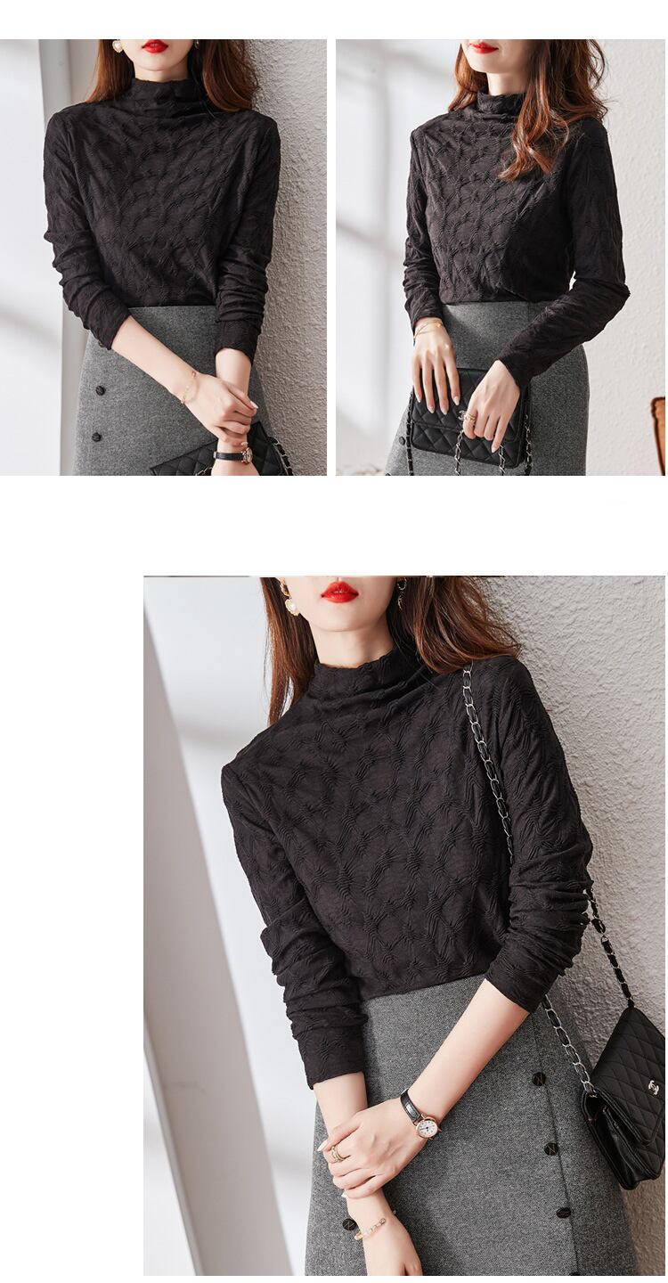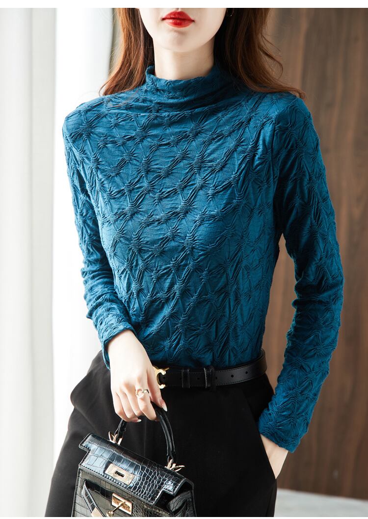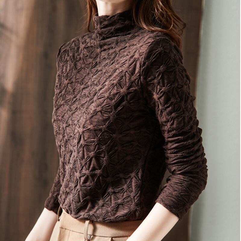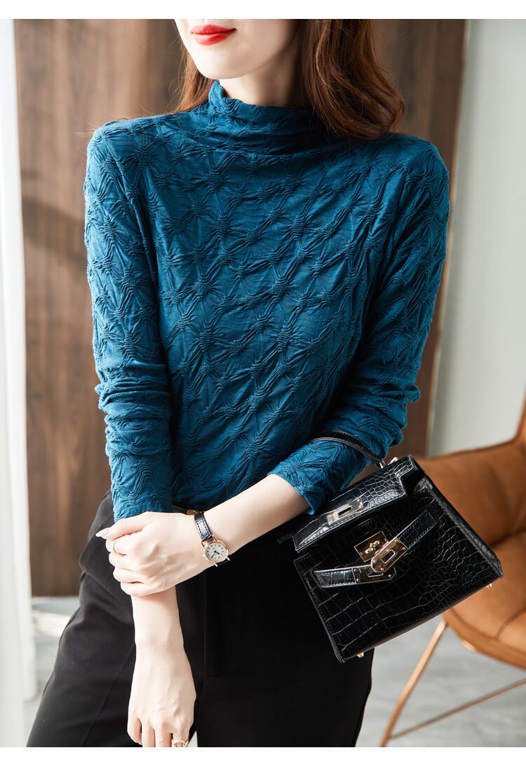 LJSXLS ハーフカラーひだスリムブラウス女性長袖シャツレディース 2021 秋トップス ロング オータム 秋物 Son88452571044