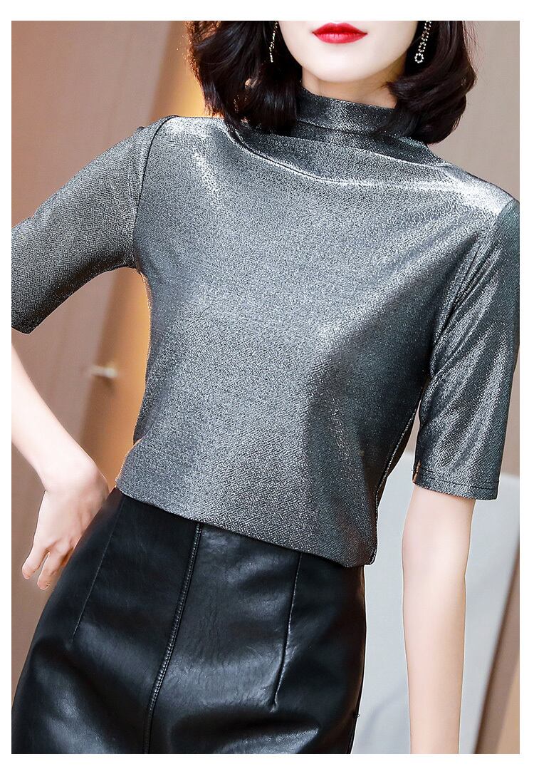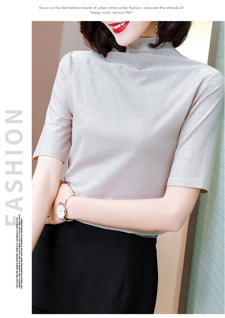 LJSXLS 2022 夏無地タートルネックスリムブラウス女性ハーフスリーブレディースブラックトップス 半袖 サマー 夏物 ソリッドカラー Son58943654791