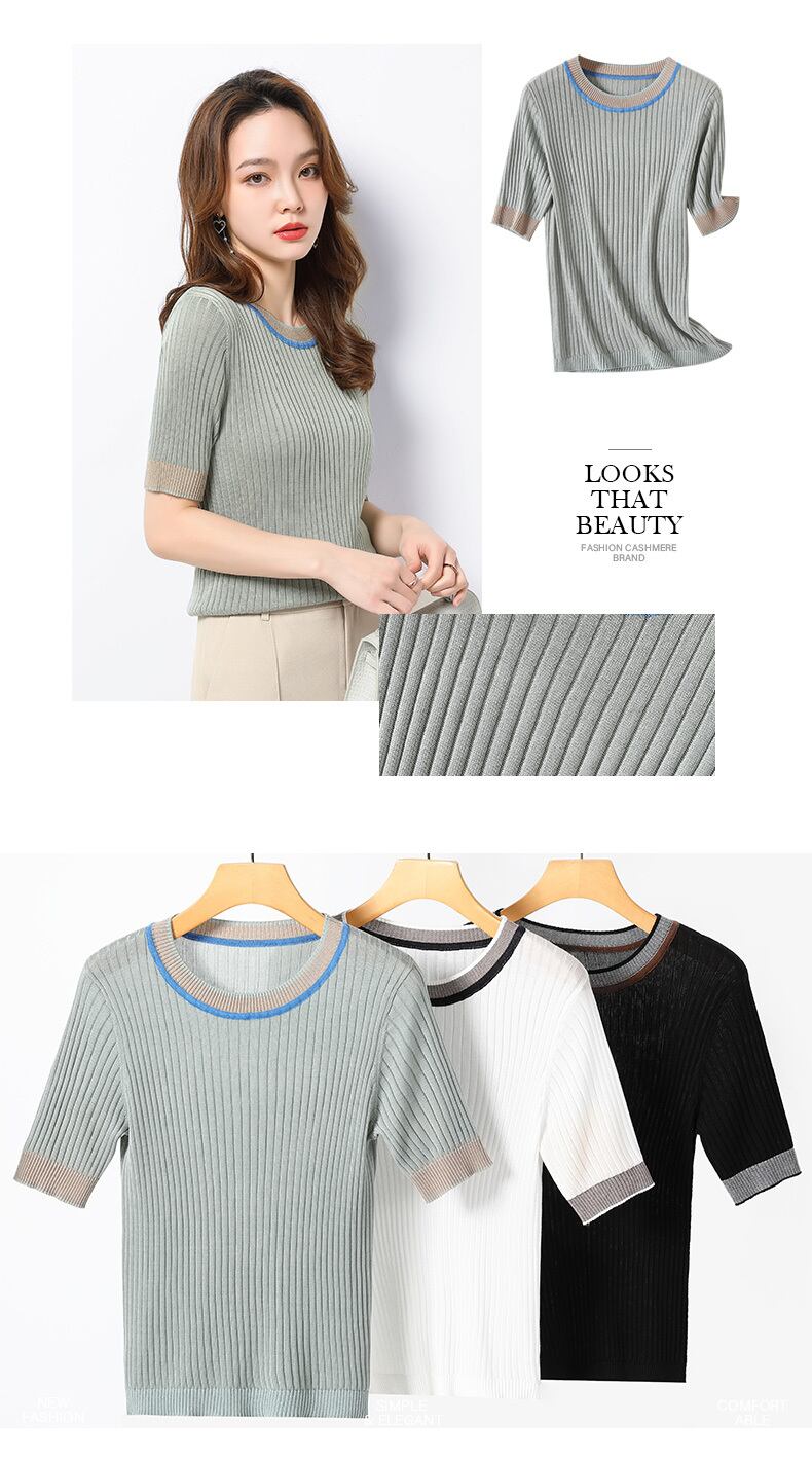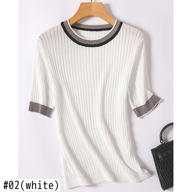 LJSXLS 女性服 O ネック半袖ニット Tシャツ白トップス 2021 夏 Tシャツ Roupas s ショート ホワイト ハーフスリーブ サマー 夏物 Oネック Son89540172331