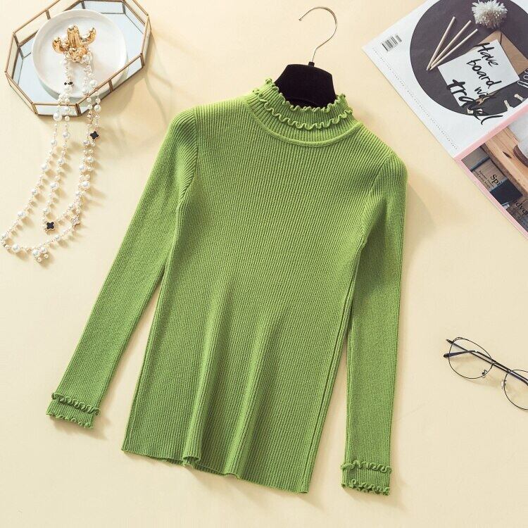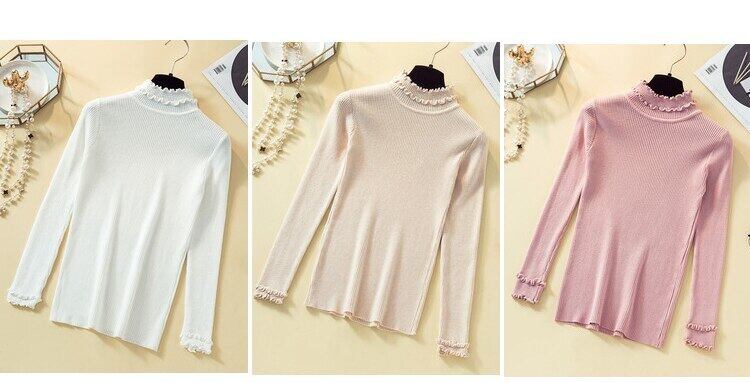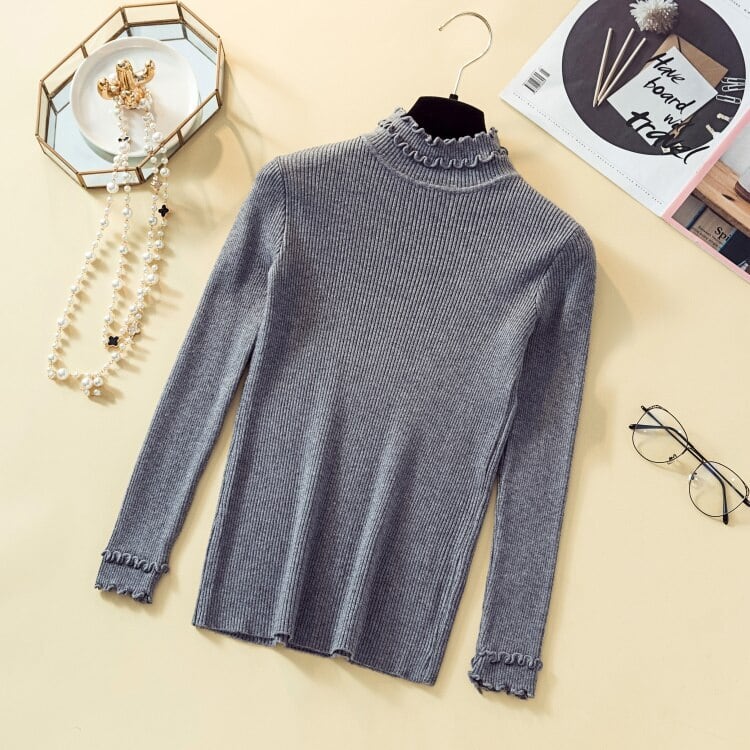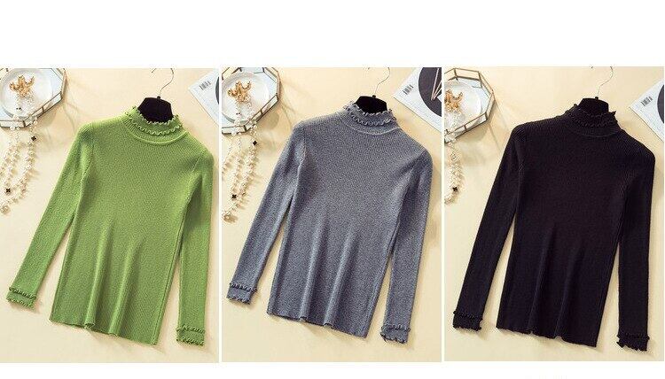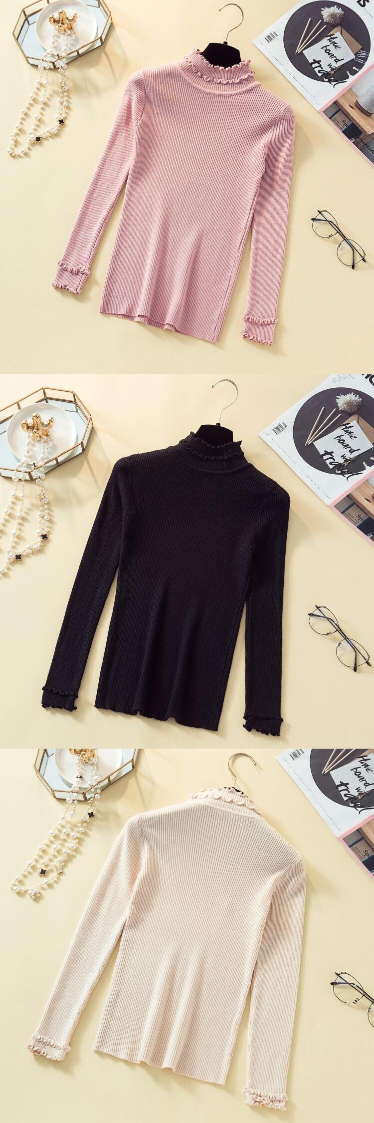 フリルハーフタートルネックニットセーターレディースセーター秋冬トップス女性プルオーバージャンパープルハイバー婦人 Truien オータム 秋物 ウィンター 冬物 Son48496055218