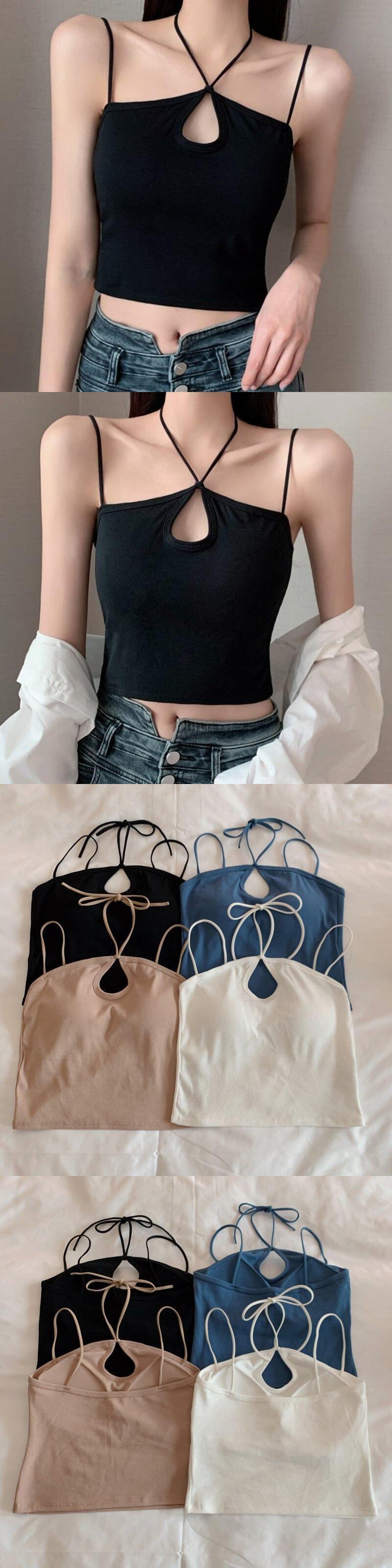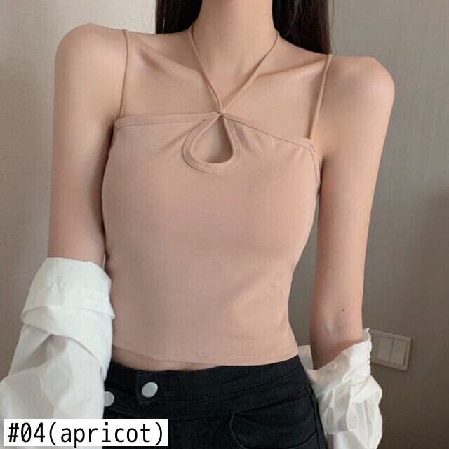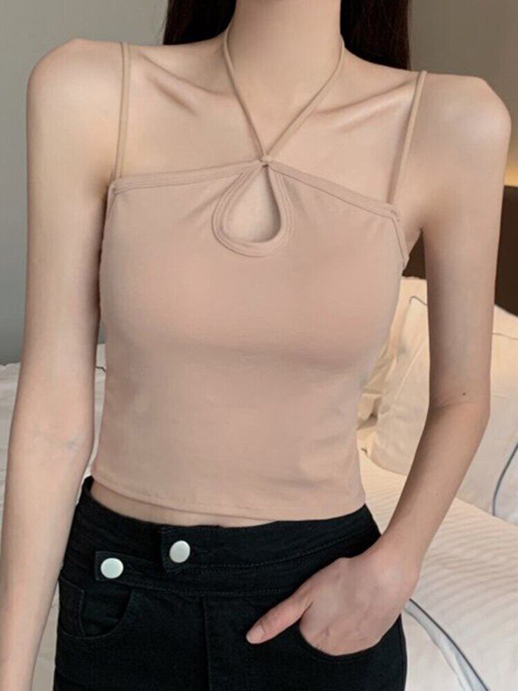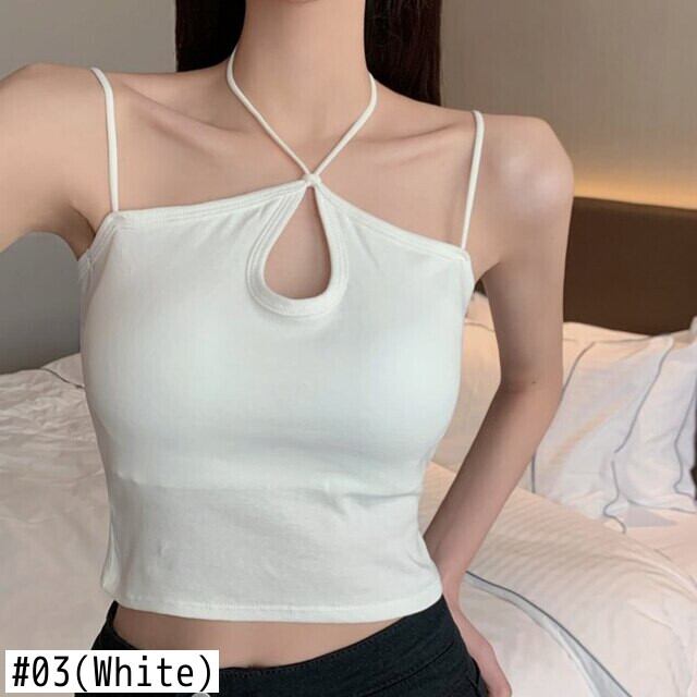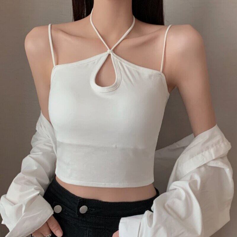 2022 夏中空アウトキャミソールレディーストップスセクシーなスリムホルタークロップトップ固体女性服タンクホワイトノースリーブベスト サマー 夏物 ソリッドカラー Son306647124