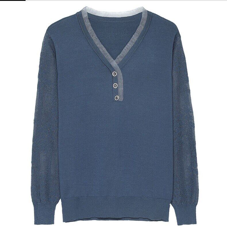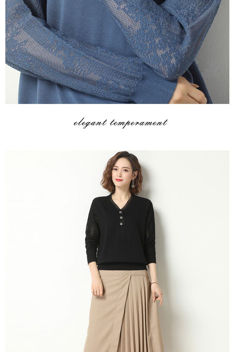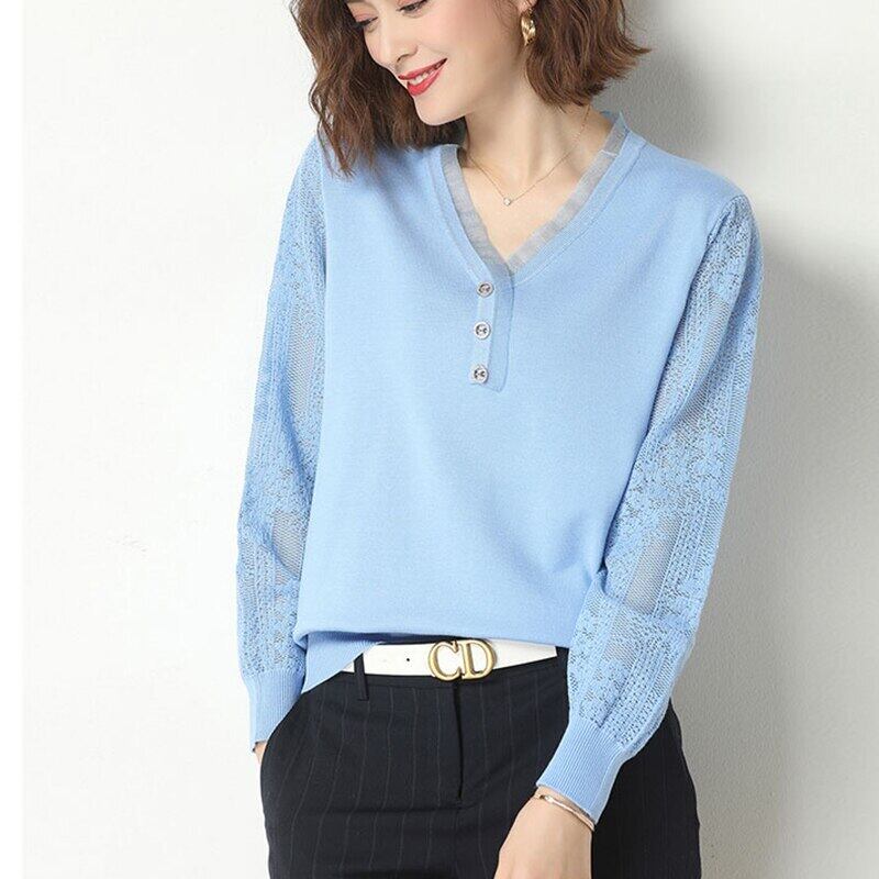 LJSXLS V ネックパッチワークニットプルオーバーセーター女性服長袖ルーズトップ秋冬 2021 セーターデ ロング オータム 秋物 ウィンター 冬物 Vネック Son36452047830