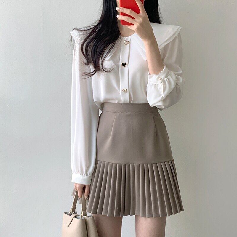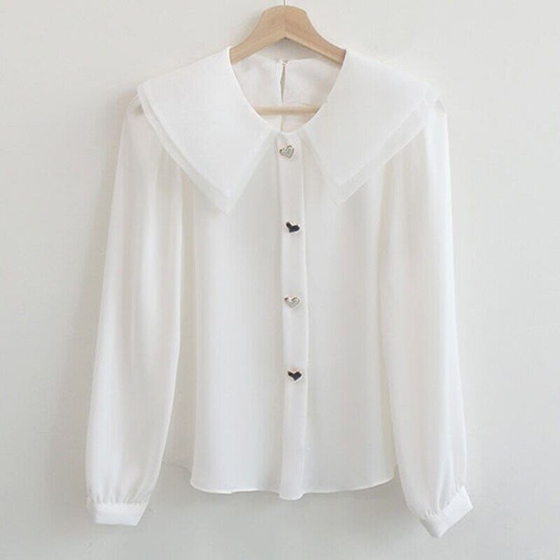 ホワイト シャツ レディース 無地 二層 長袖 シフォン ブラウス 秋 ボタン ベーシックトップス ロング オータム 秋物 ソリッドカラー Son36376595020