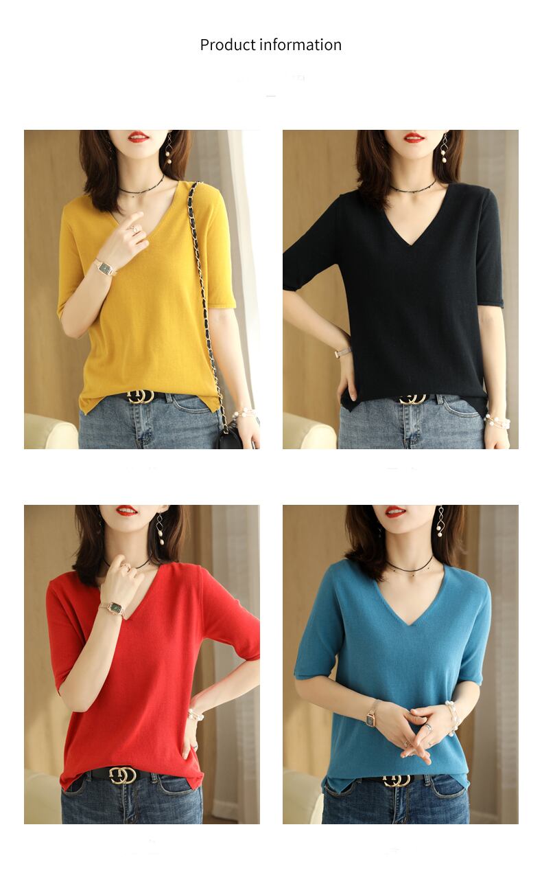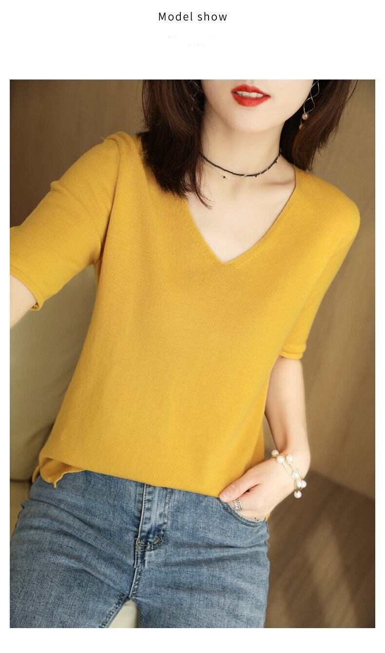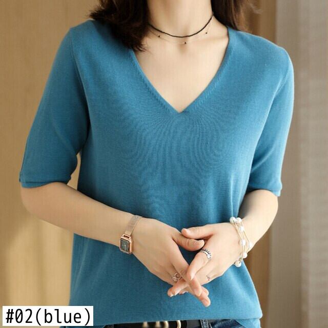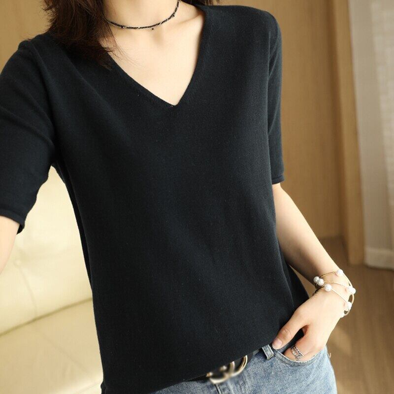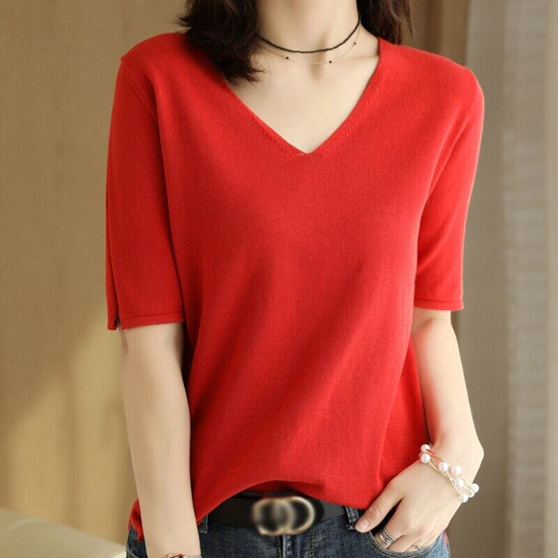 LJSXLS Tシャツベーシックニット半袖Tシャツ女性ソフトプルオーバーレディース無地トップス2021夏 ショート ハーフスリーブ サマー 夏物 ソリッドカラー Son53376136494