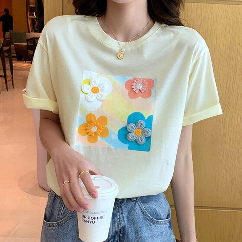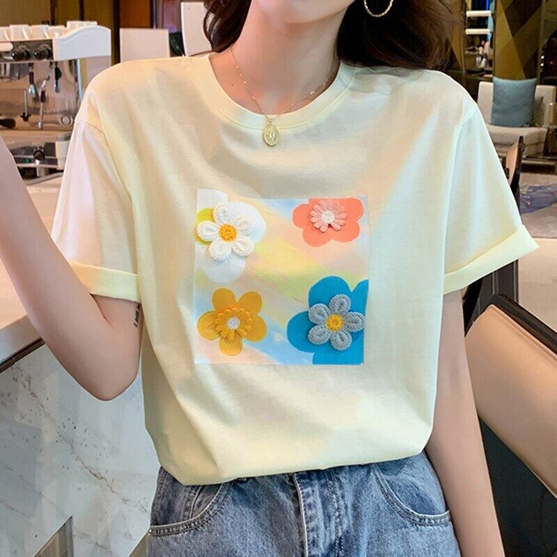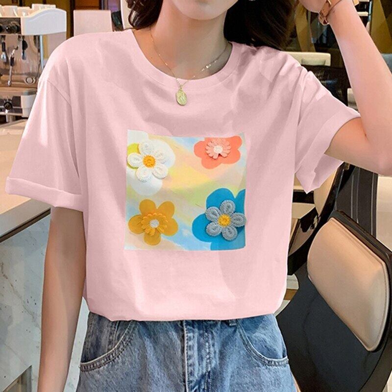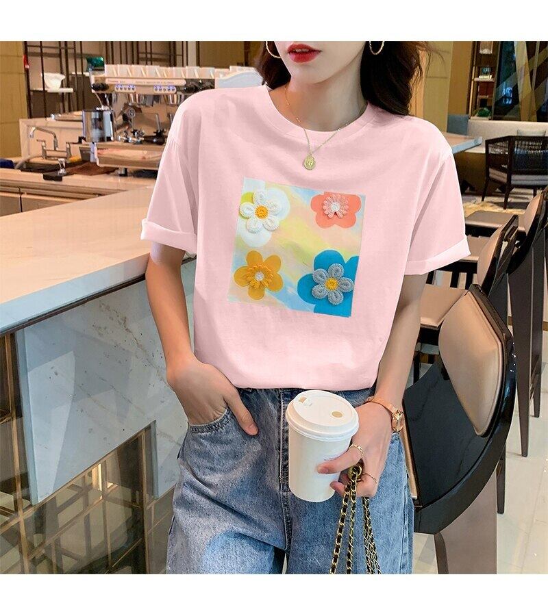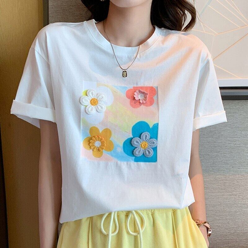 ホワイト Tシャツ女性スタイル 2022 花柄コットン半袖 Tシャツ夏レディーストップスルーズ Tシャツ ショート ハーフスリーブ サマー 夏物 Son59333580792