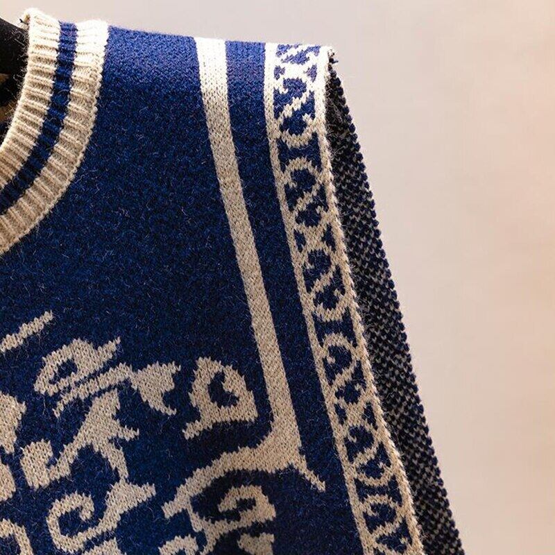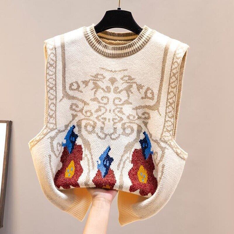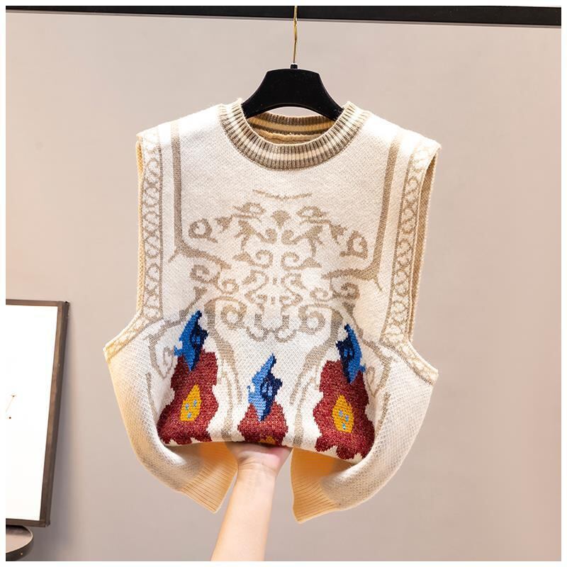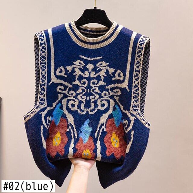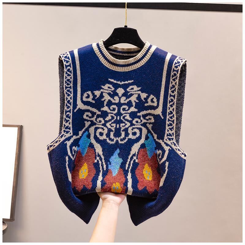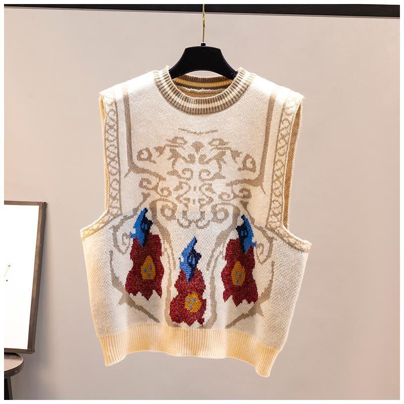 LJSXLS ジャカード ノースリーブ ニット セーター ベスト女性 2021 秋のプルオーバー トップス スタイル オータム 秋物 Son27293621754