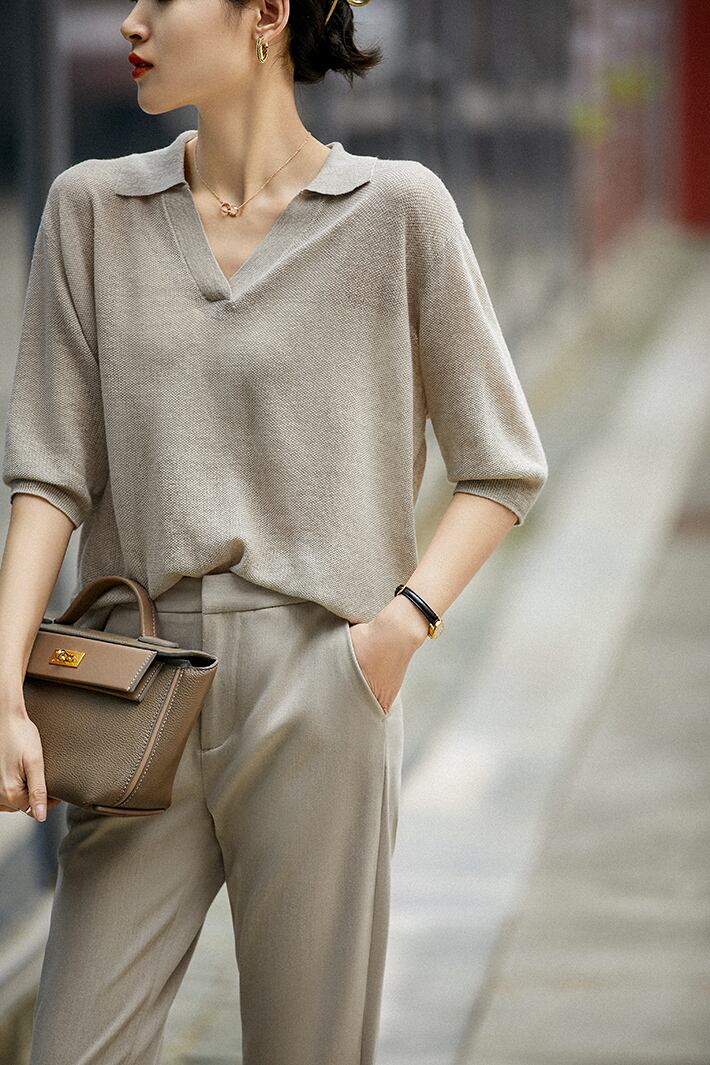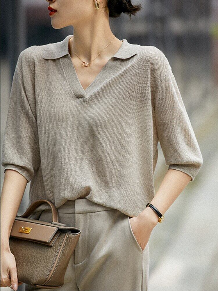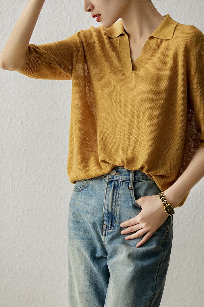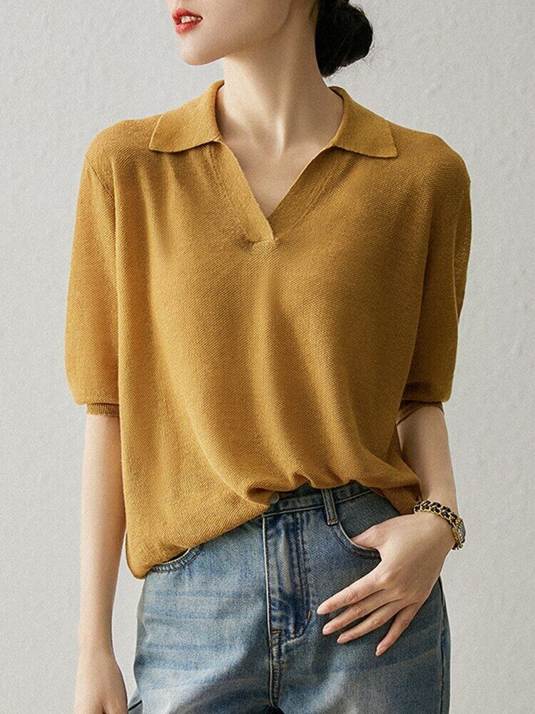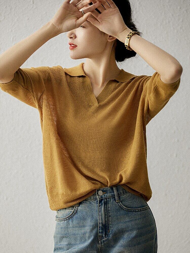 半袖 Tシャツターンダウン襟トップニット Tシャツ女性 Tシャツ 2022 夏の無地 Tシャツ ショート ハーフスリーブ サマー 夏物 ソリッドカラー Son71626312833